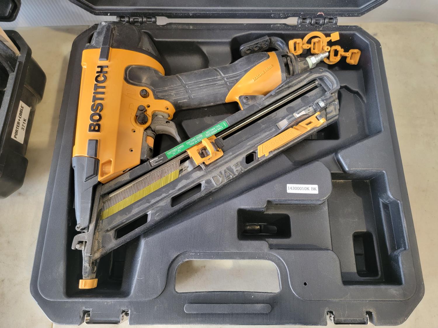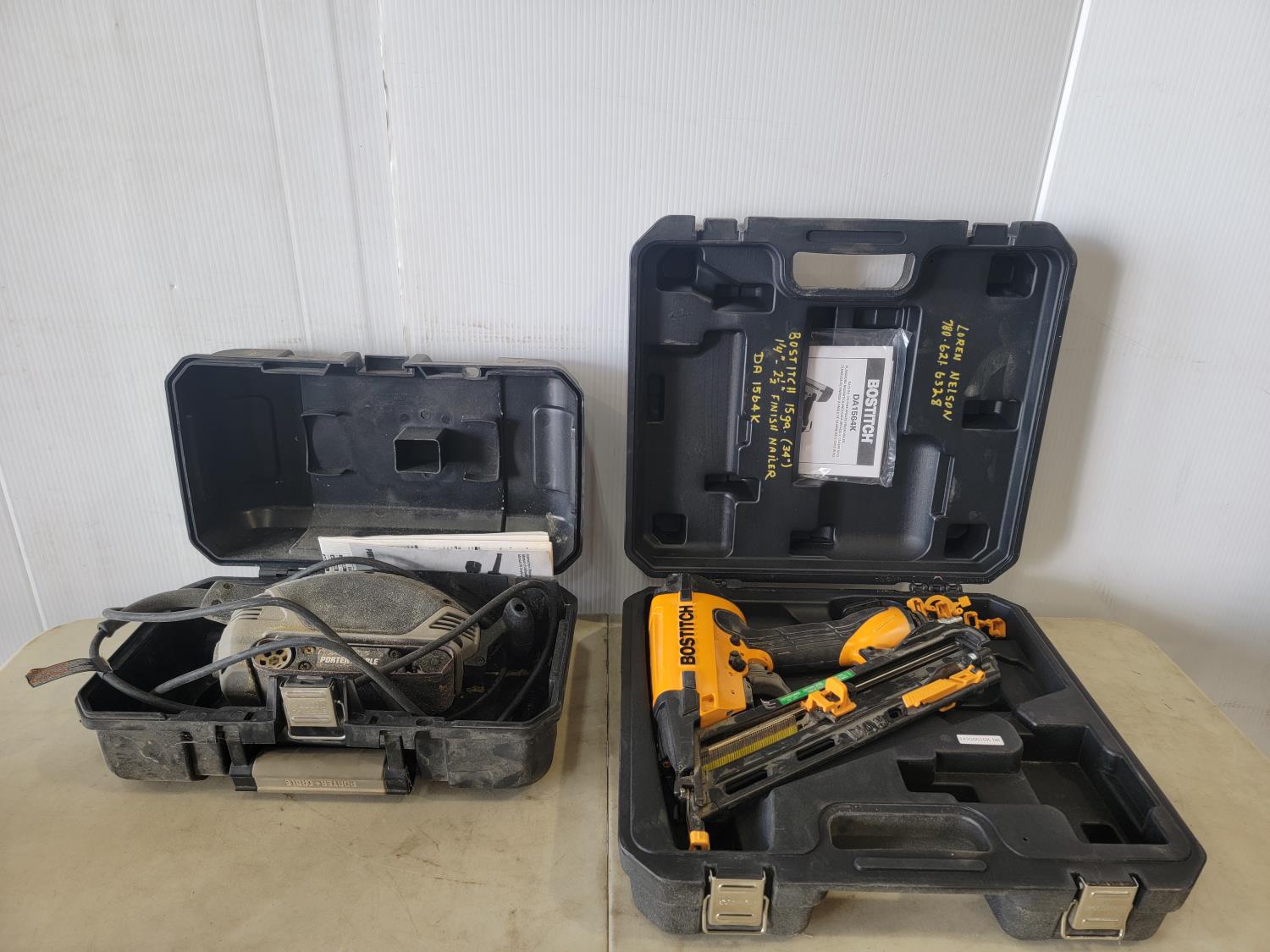 1118 Bostitch Angled Finish Nailer and Porter Cable Compact Belt Sander