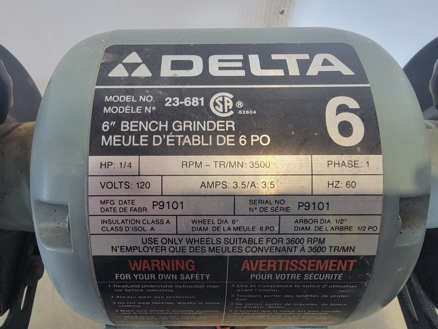 1409 Delta 6 Inch Bench Grinder