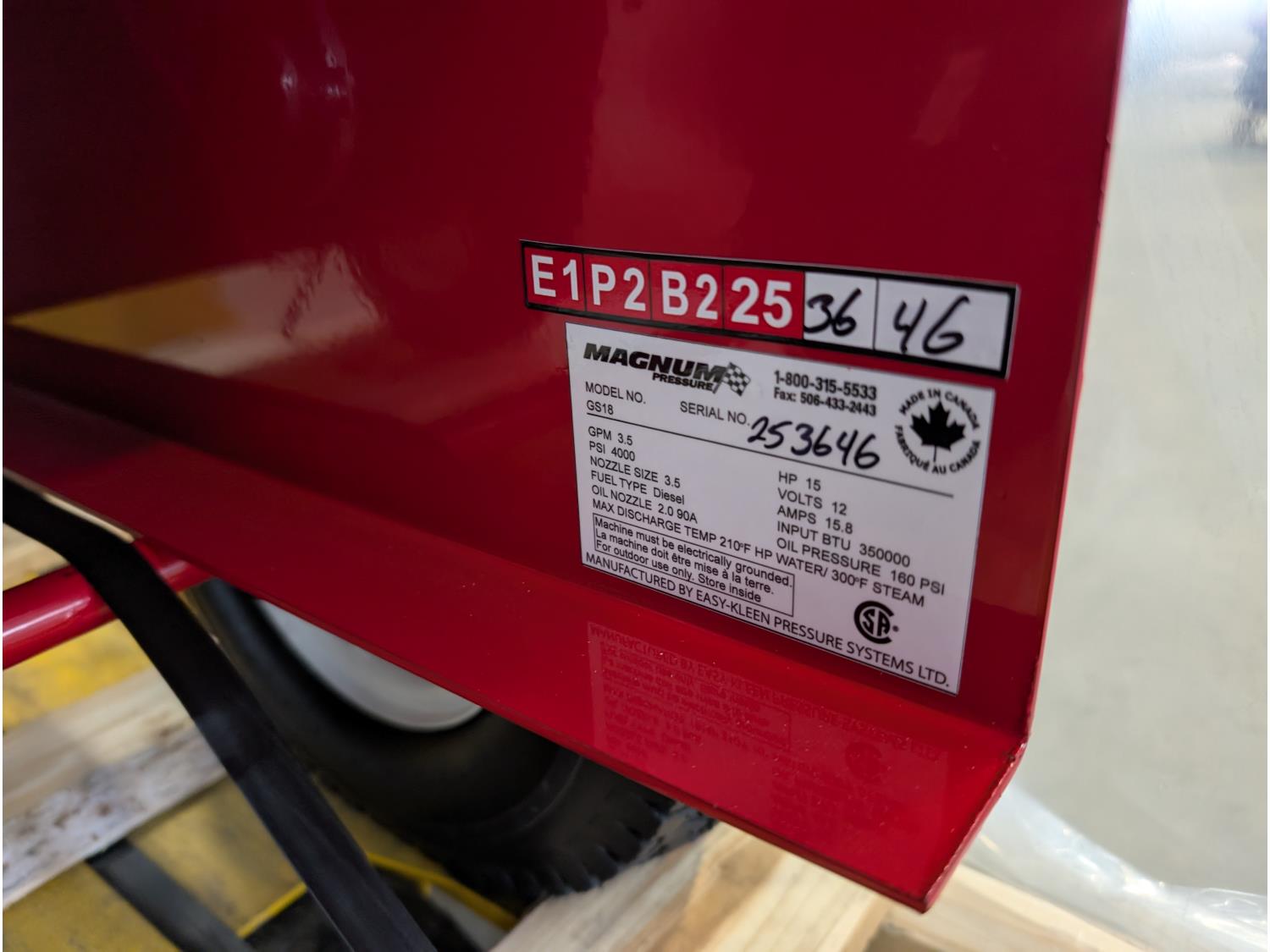 3.5 GPM at 4000 PSI, 15 HP, gasoline engine, electric start, 12 volt burner, oil/diesel fired burned/thermostat, schedule 80 coil with stainless steel housing, fully welded, powder coated frame, 10 gallon poly fuel tank, 30' hose and wand
