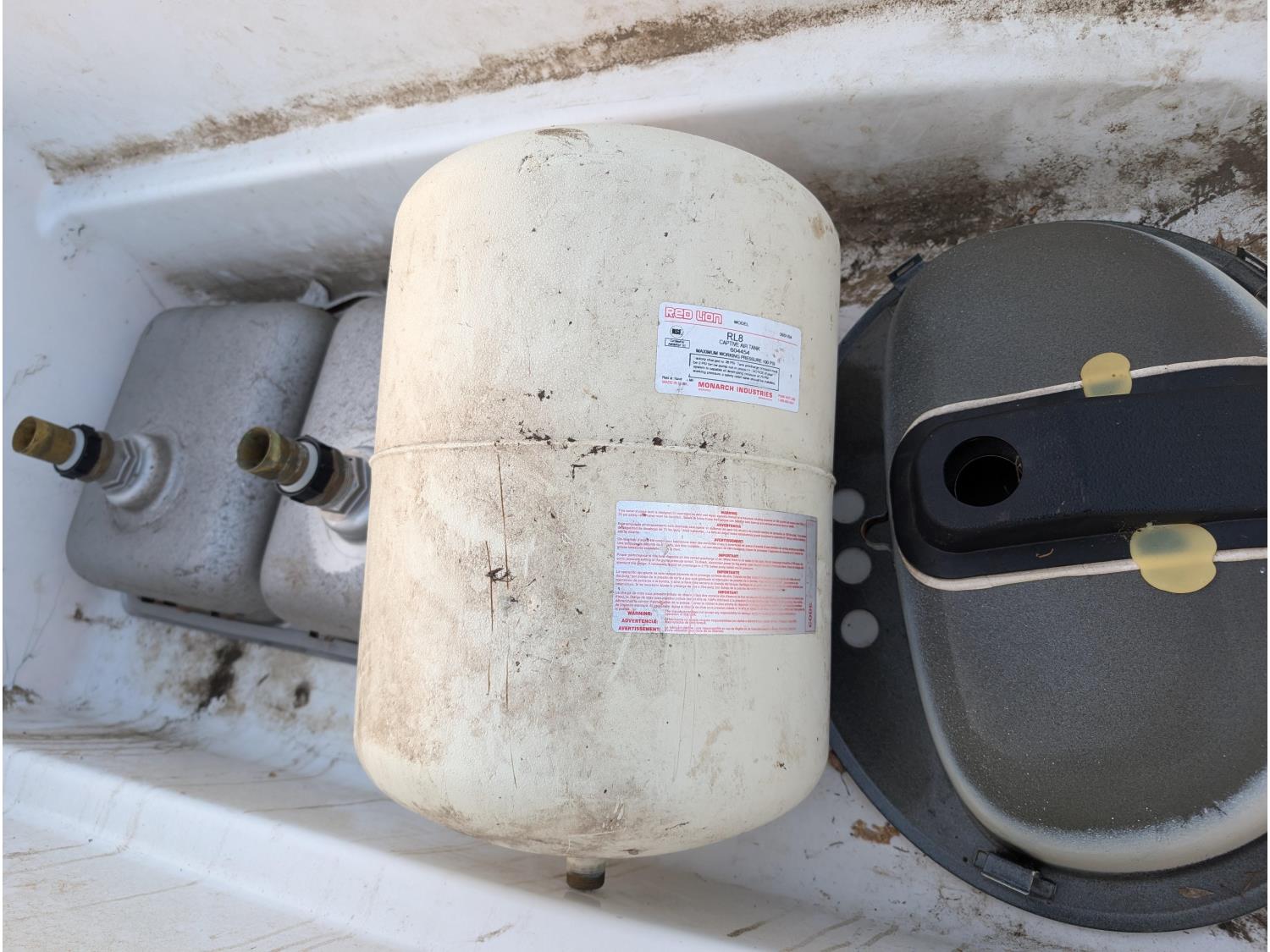 1641 Fiberglass Tub, Stainless Steel Kitchen Sick, Basin Sink and Red Lion Pressure Tank