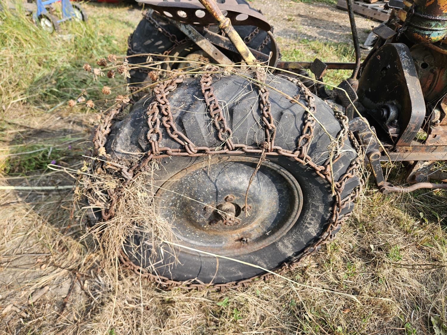 John Deere engine, 56 inch blade, tire chains,, (Untested)