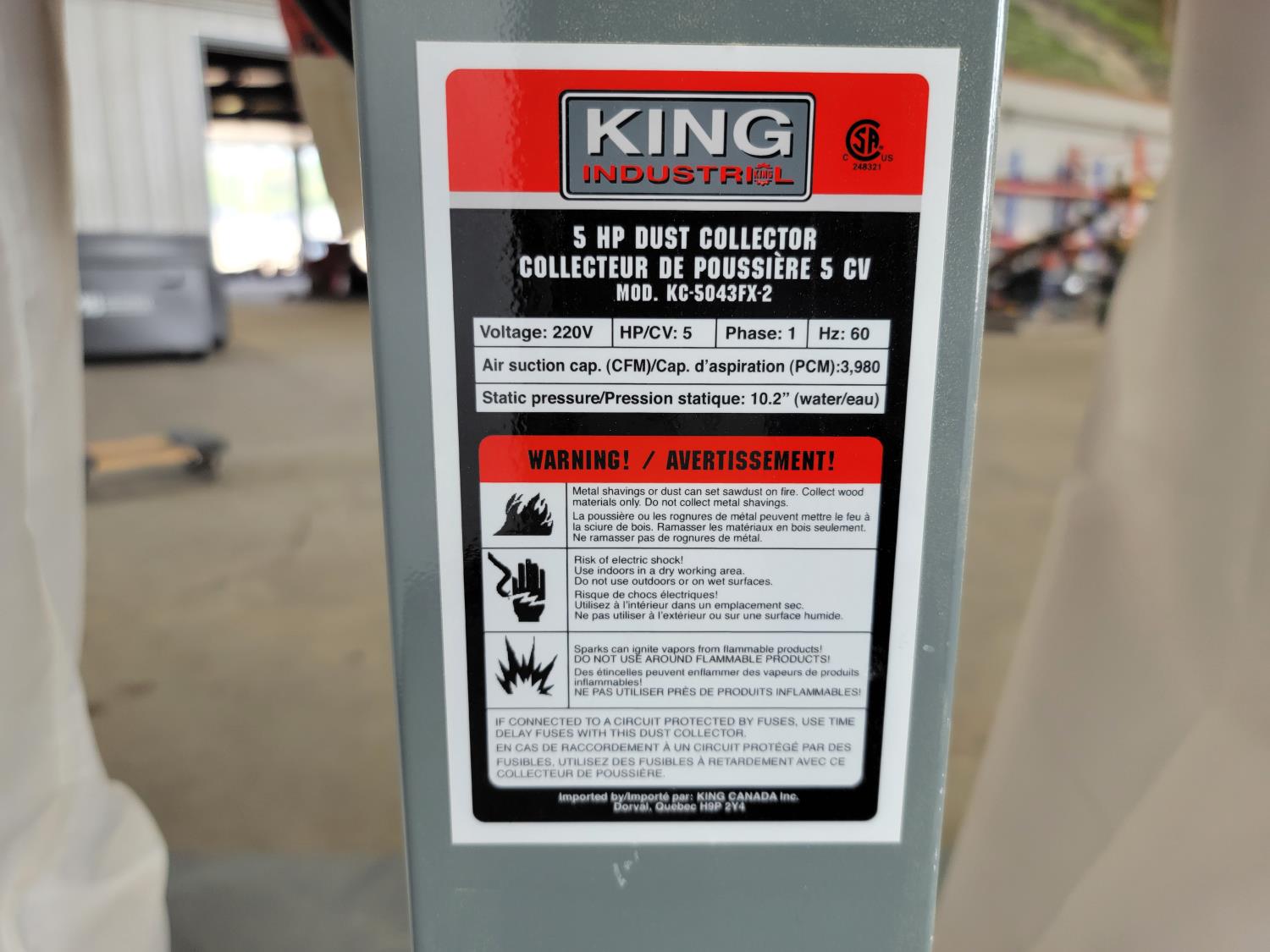 1541 King Industrial 5 HP Dust Collector