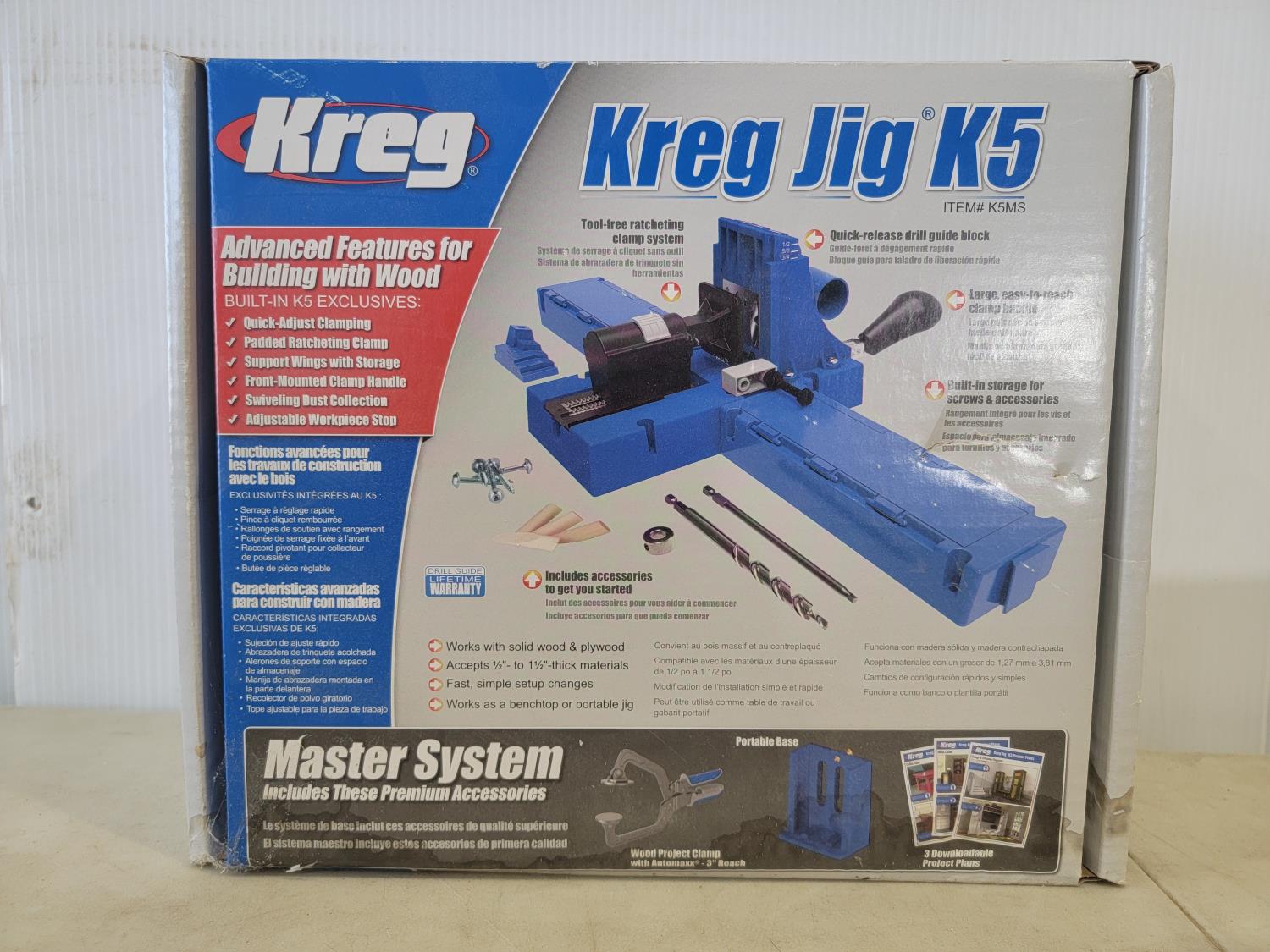 1138 Kreg Jig K5, Drill Doctor Drill Bit Sharpener and Talon 12V Hammer Driver Drill