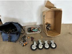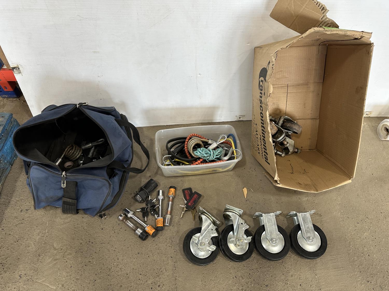1186 Qty of Caster Wheels, Bungee Straps and Locking Hitch Pins