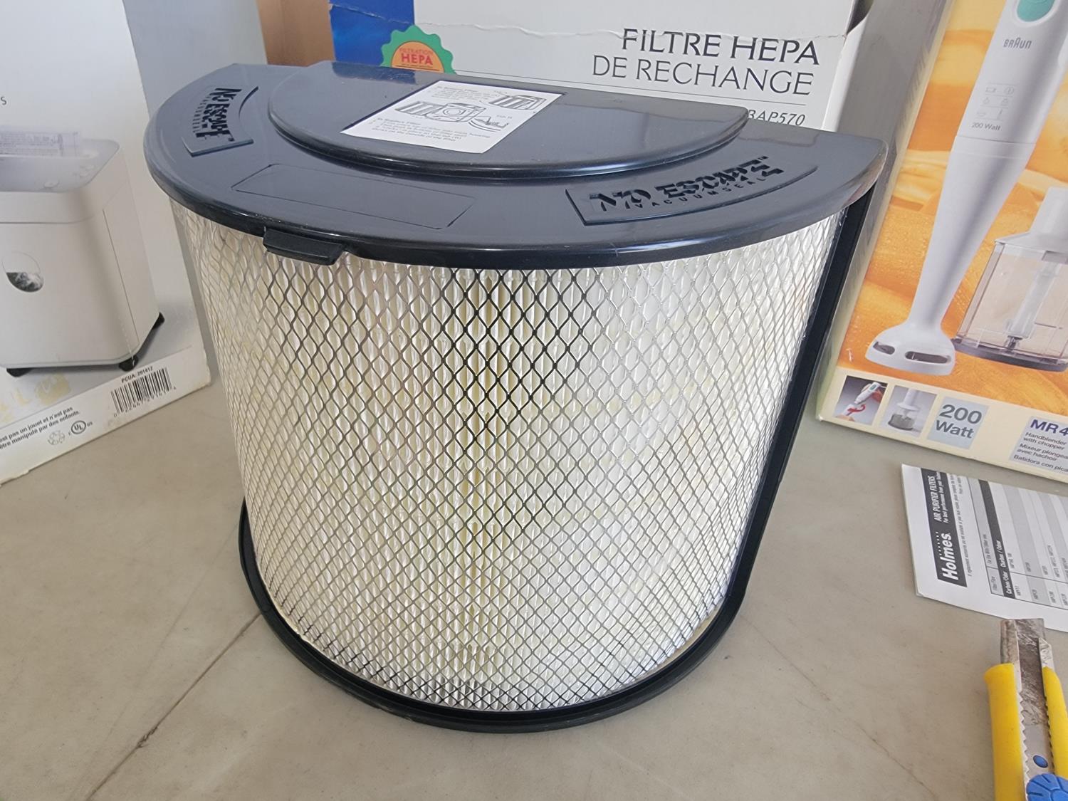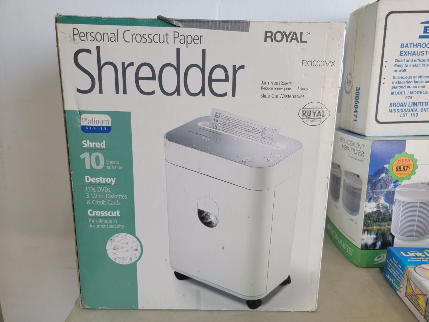 Paper shredder, Lint Lizard, Broan bathroom exhaust fan, Bionaire replacement HEPA filter, Braun Multiquick hand blender