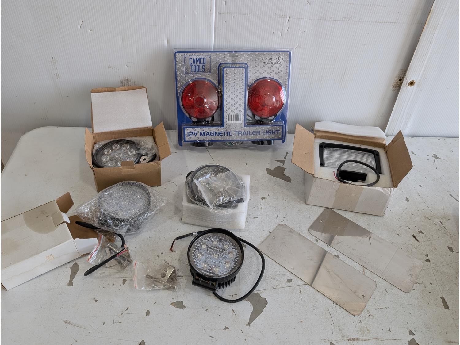 1033 Qty of LED Work Lights and 12V Magnetic Trailer Light Set (Unused)