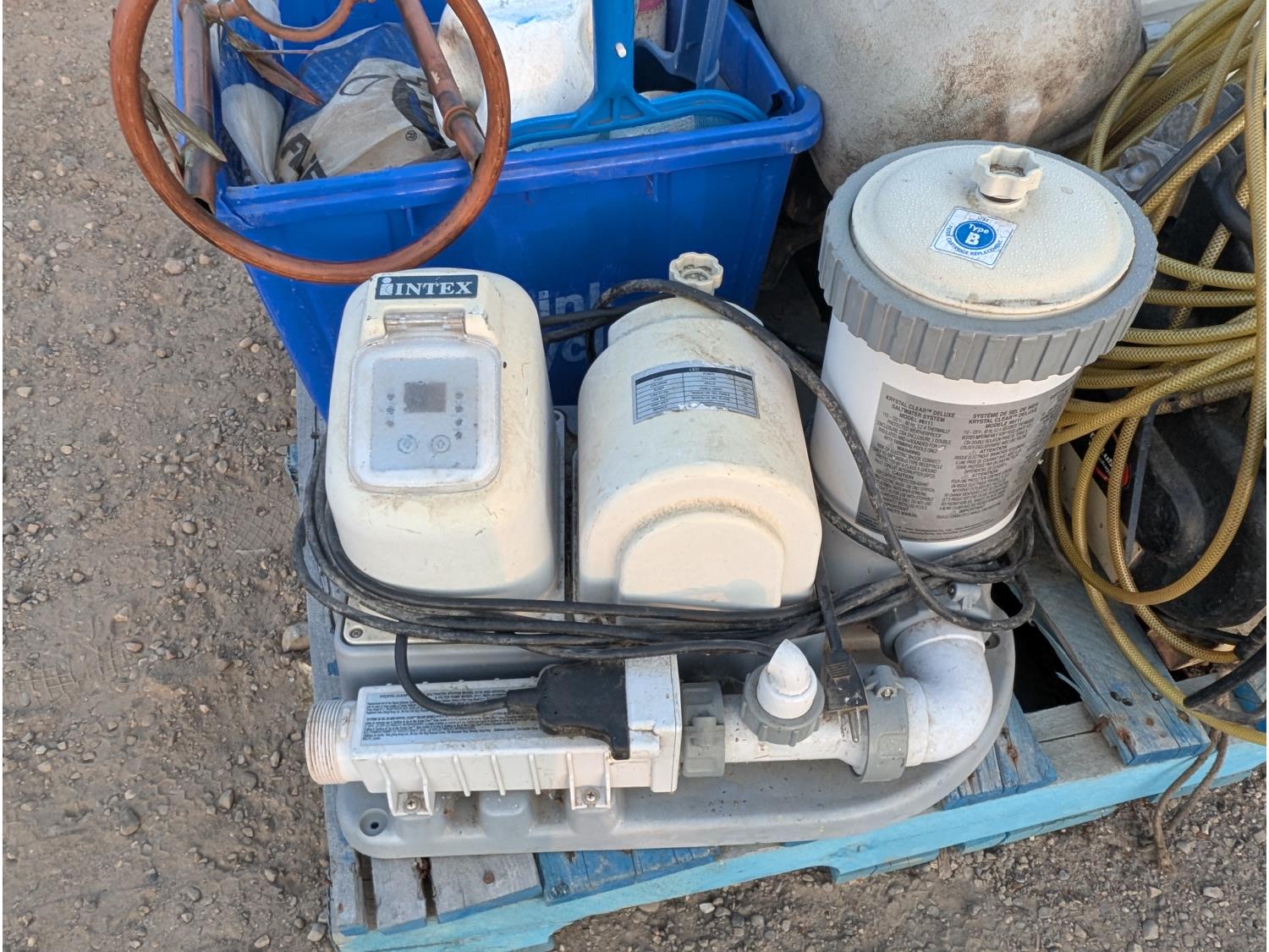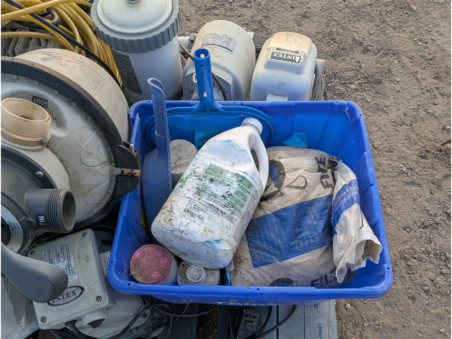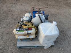 1624 Qty of Pool Accessories, Air Compressor and Portable Camp Toilet