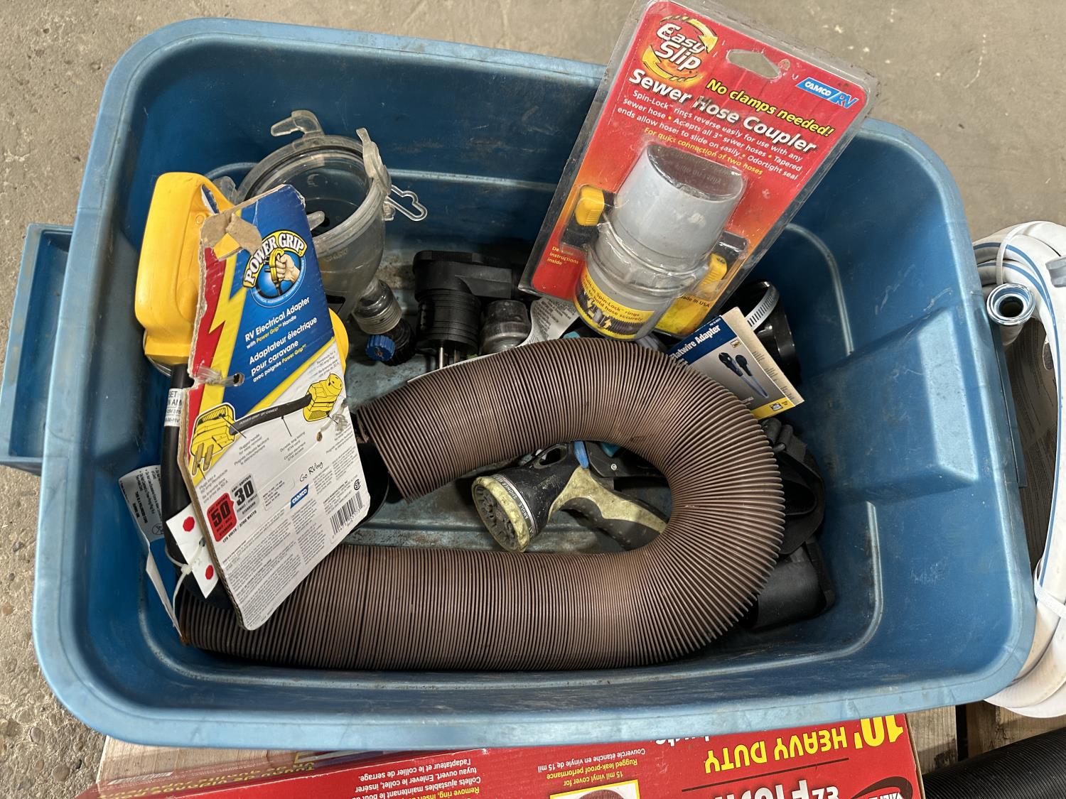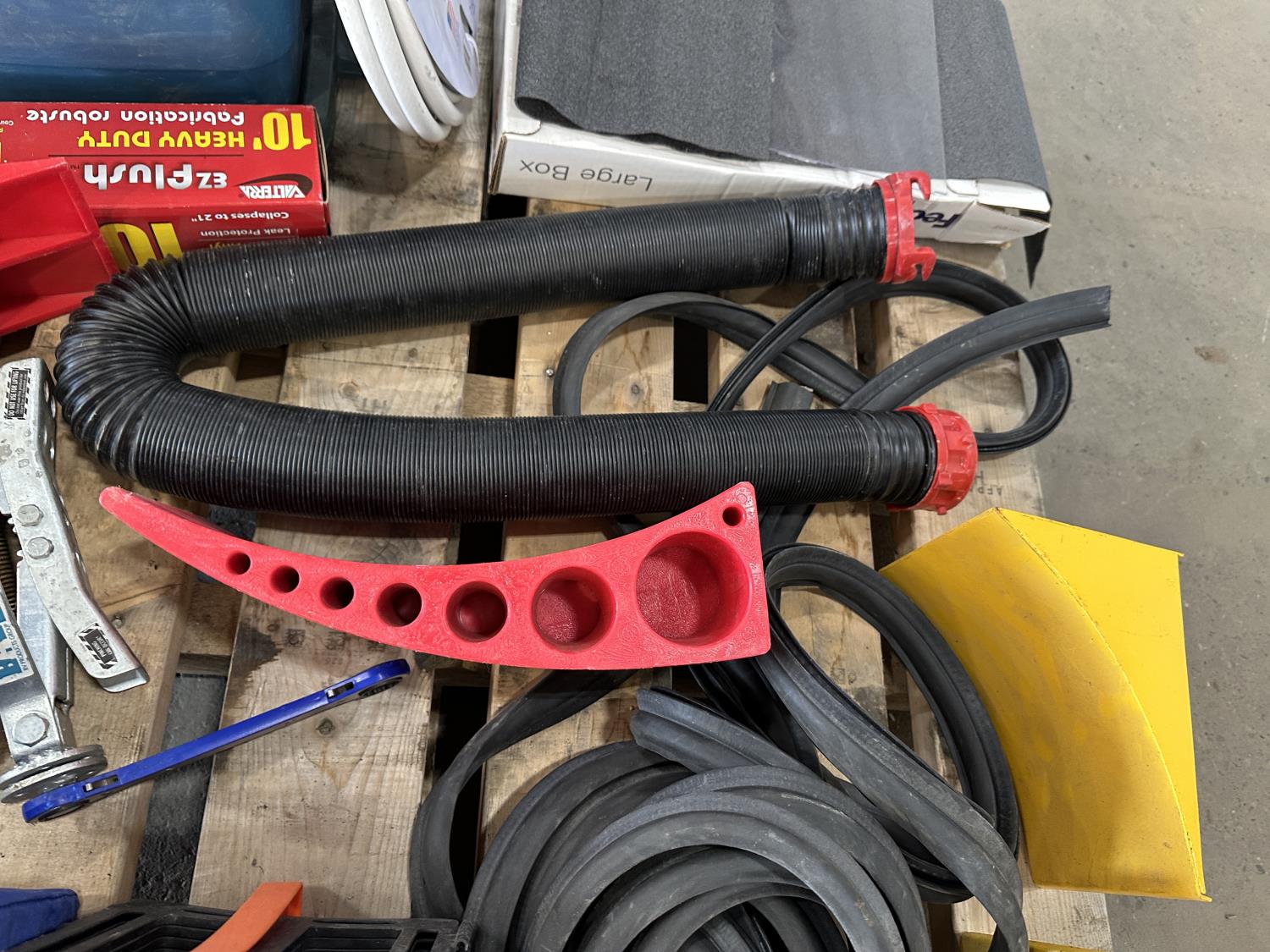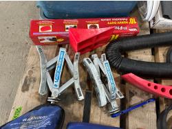 Leveling blocks, weather stripping, jacks, wheel chocks, hose