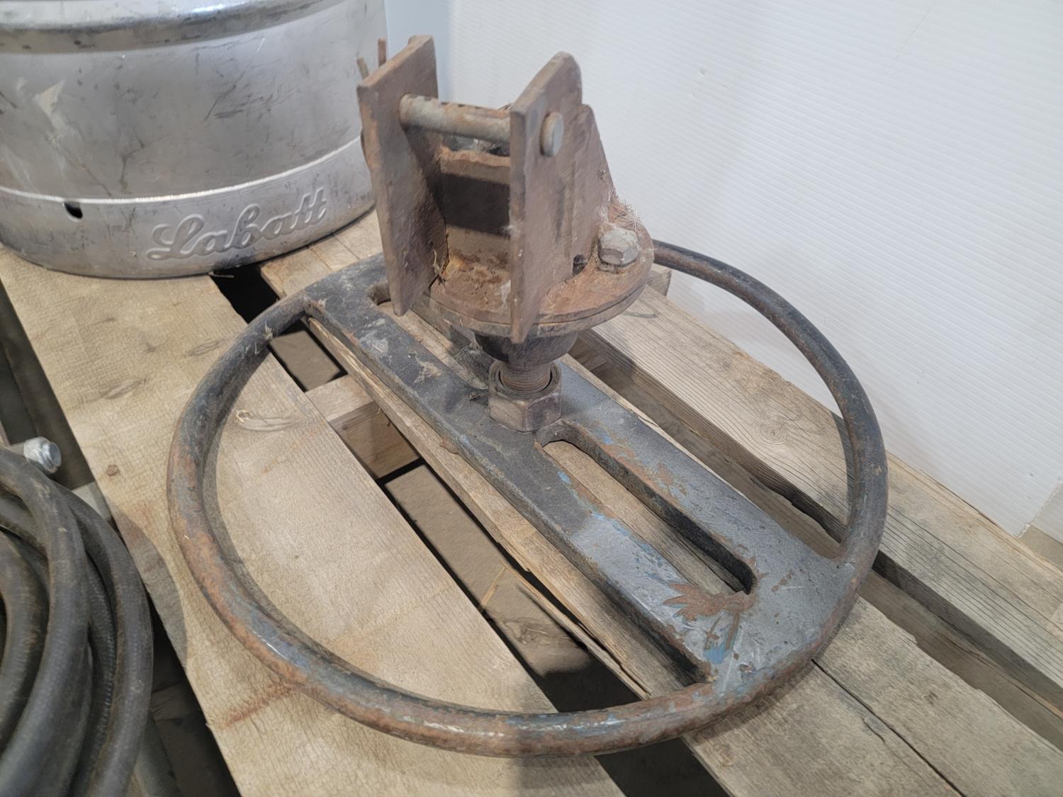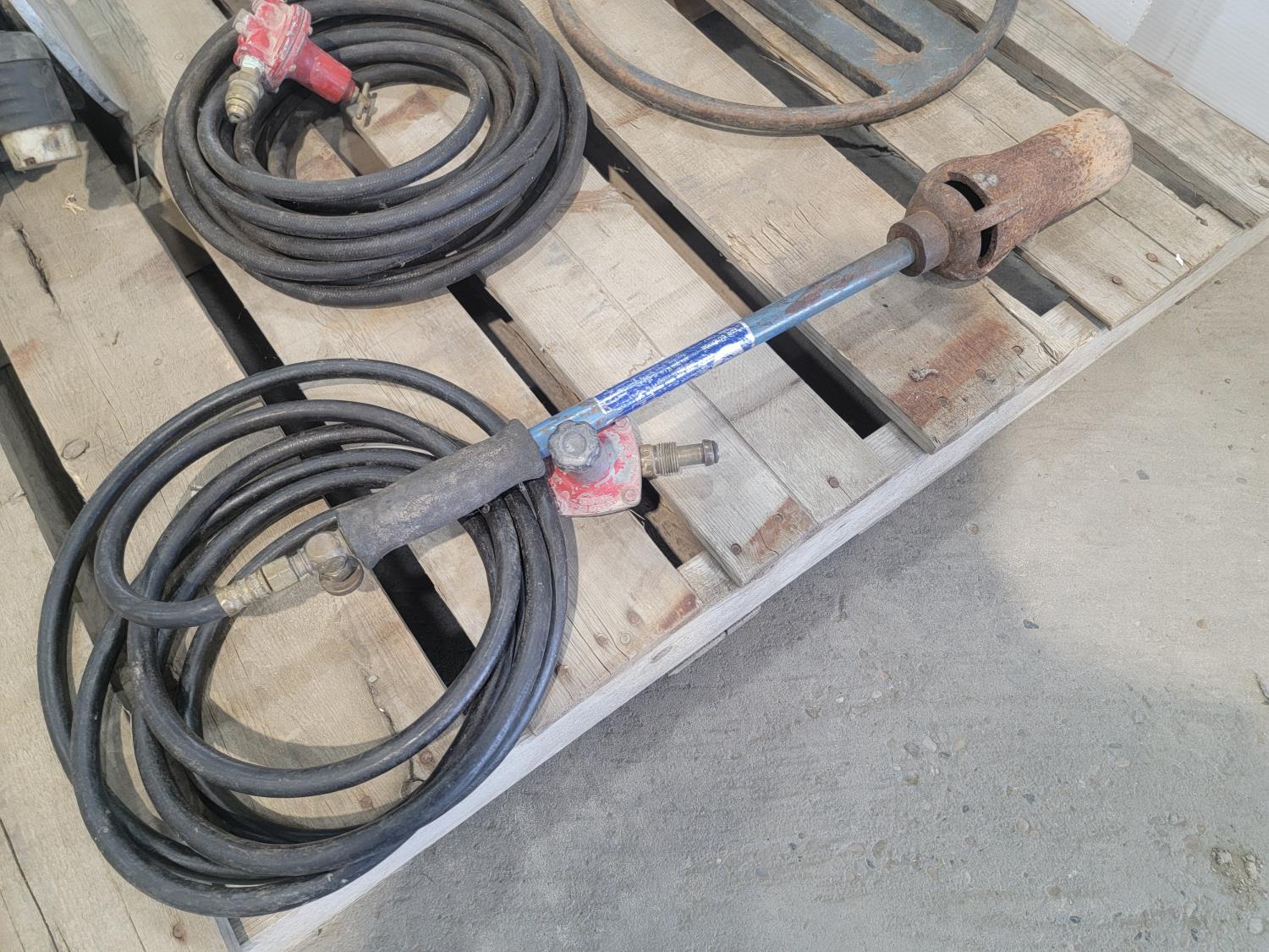 (2) 1-1/2 inch clevises, cord on reel, propane torch, (2) hoses with regulators, keg