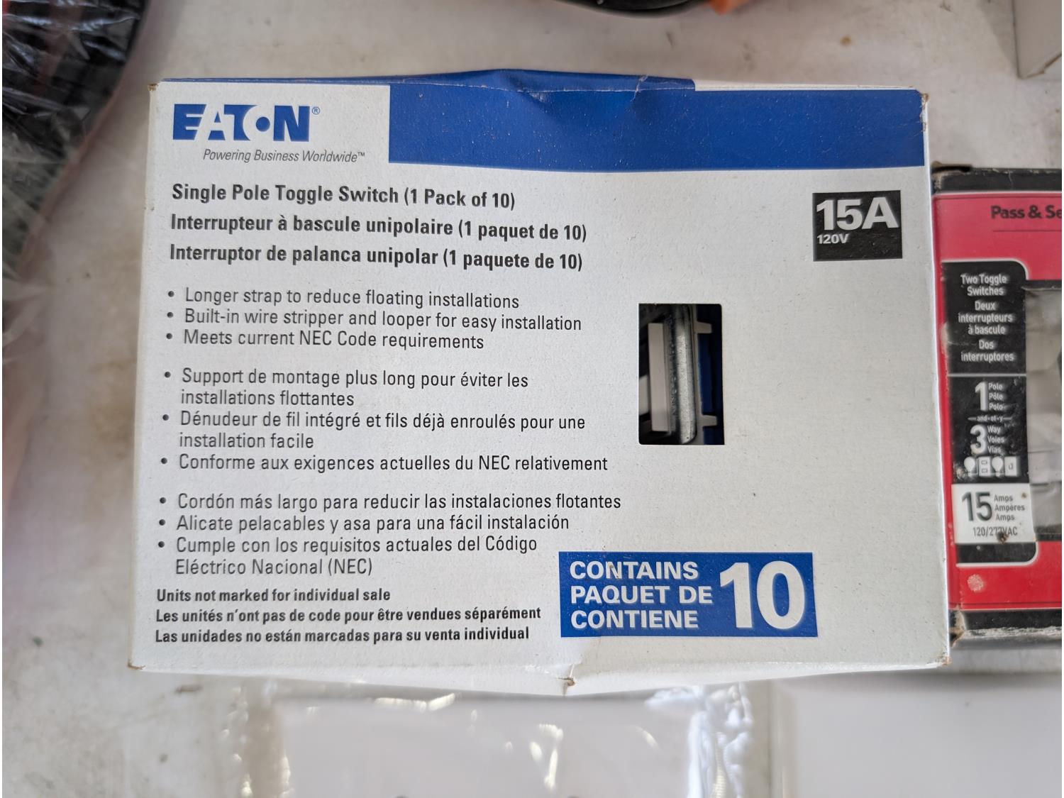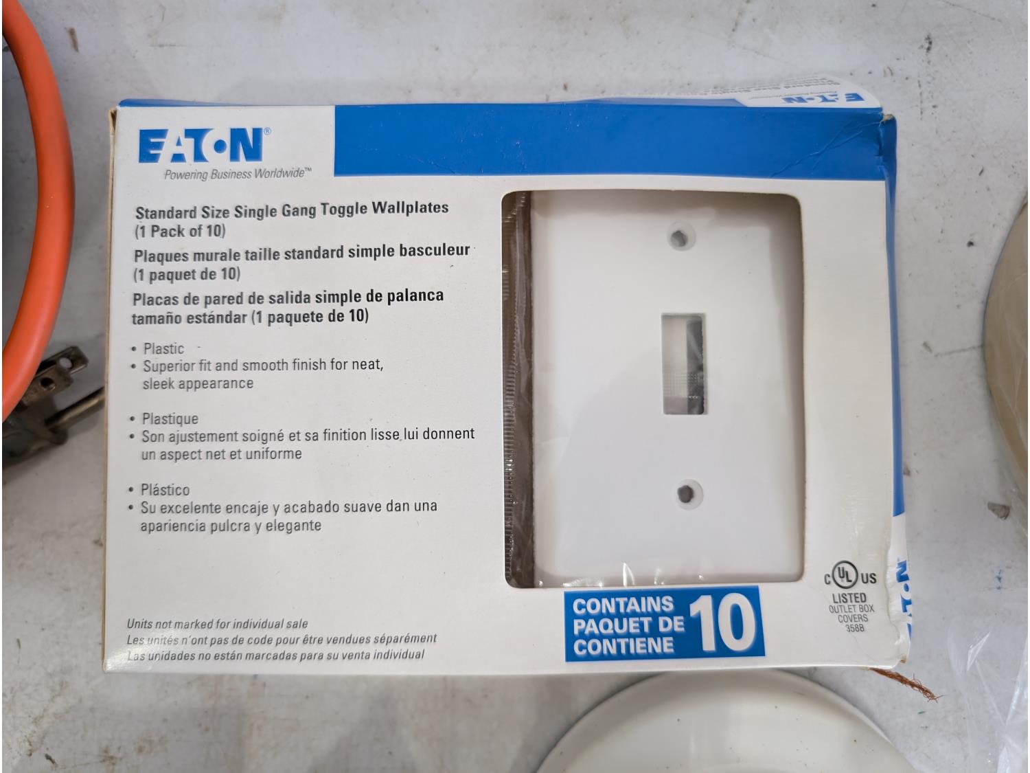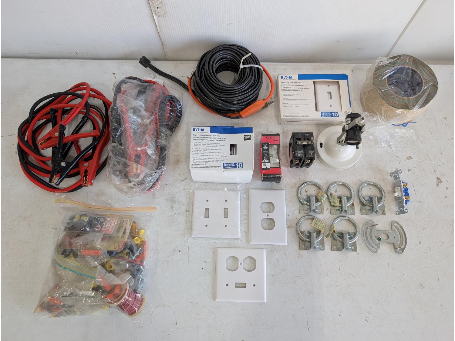 Booster cables, switch plates, electrical supplies