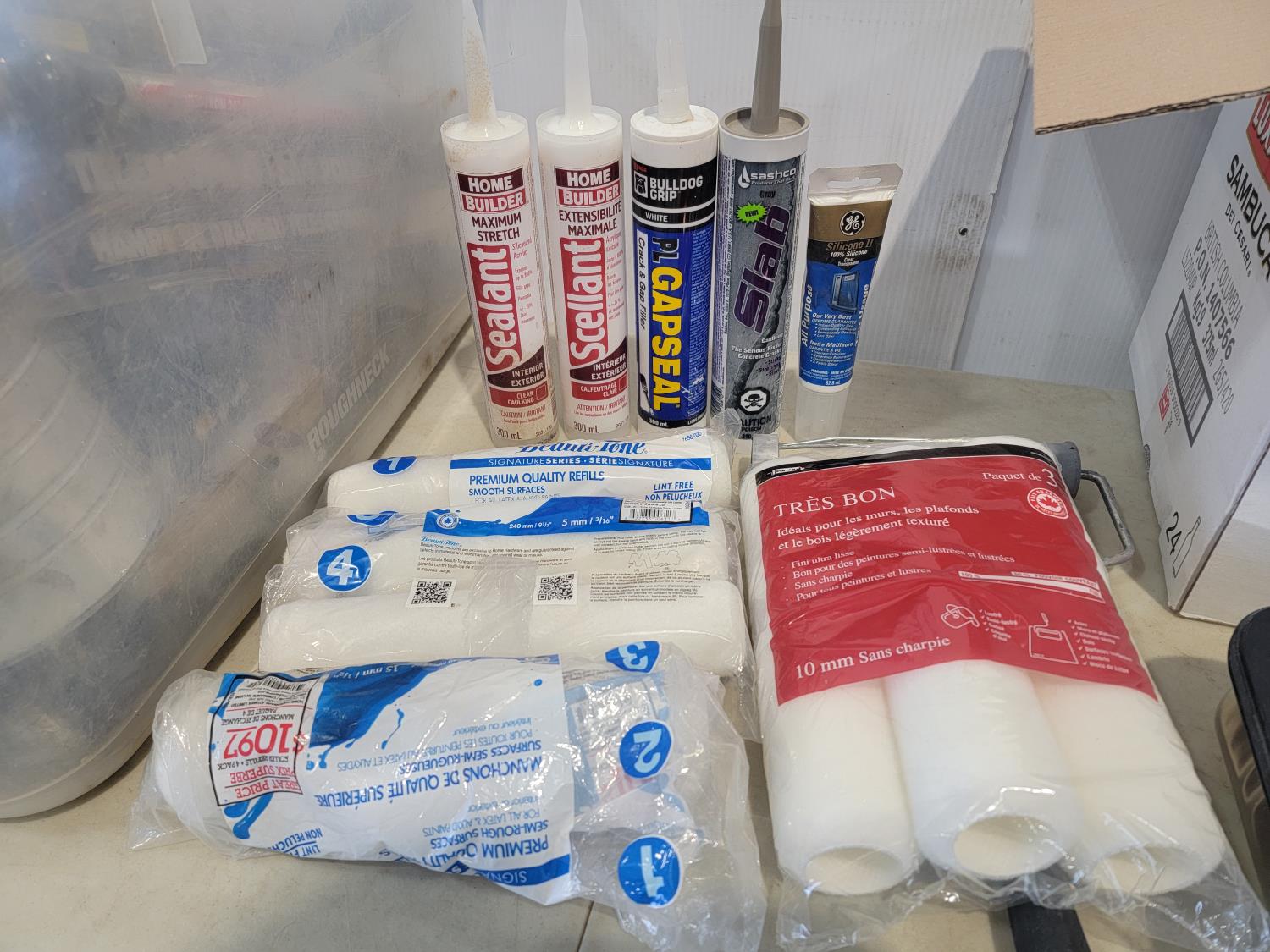 Hardware, telescoping flag pole, painting supplies, silicone