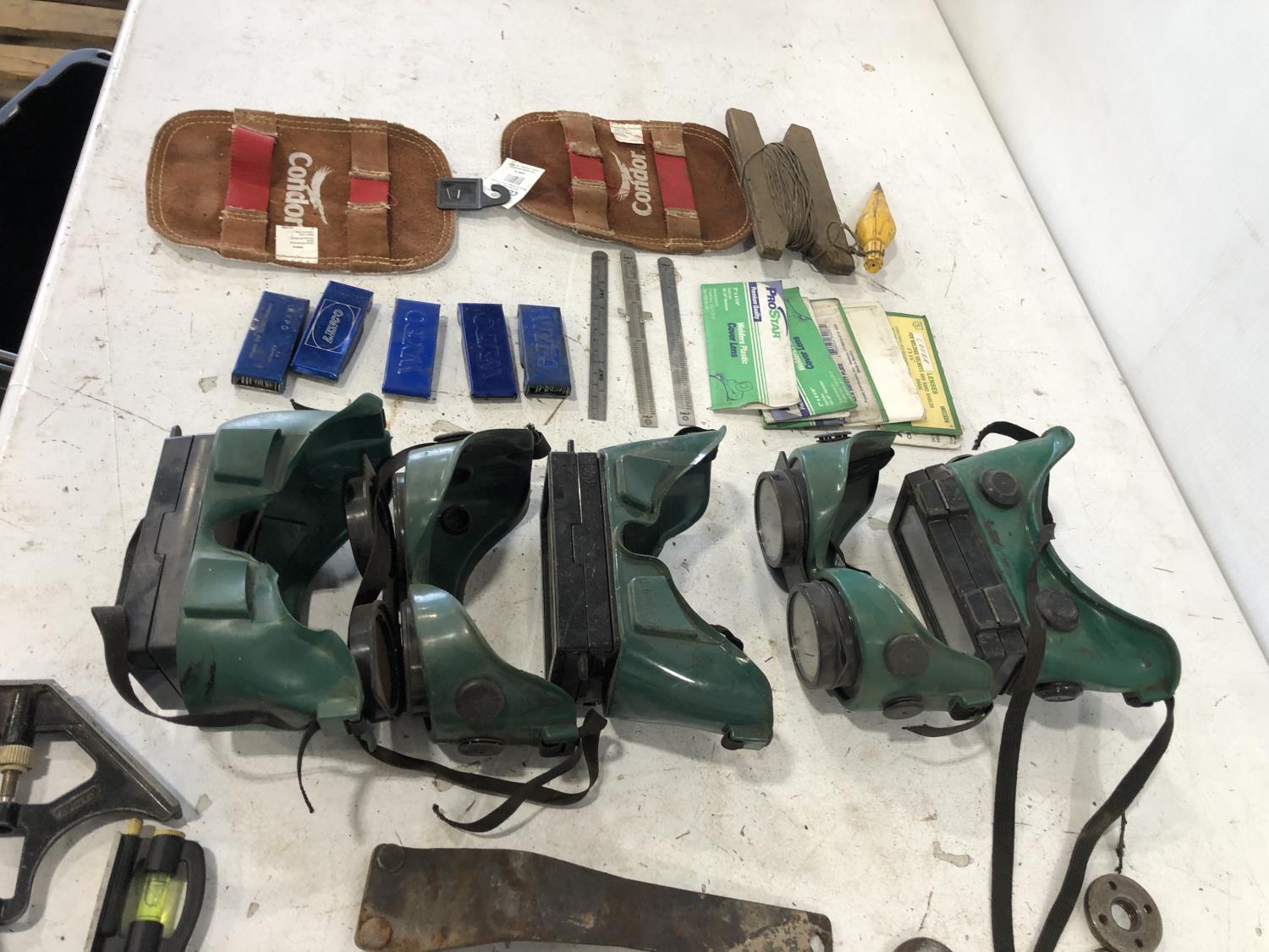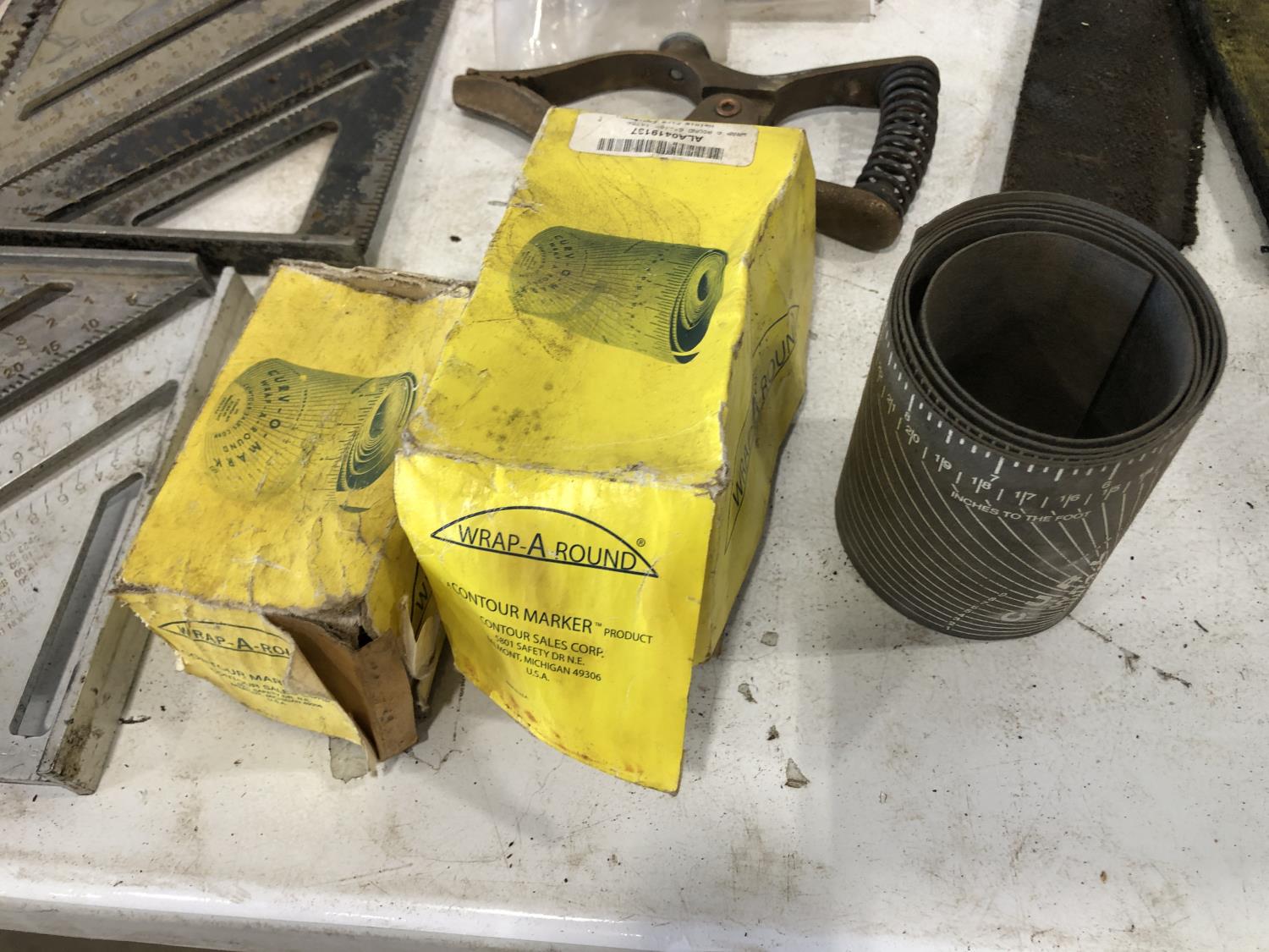 Wrap around marker, speedy squares, electrode holder, allen wrenches, goggles with lenses, clamps