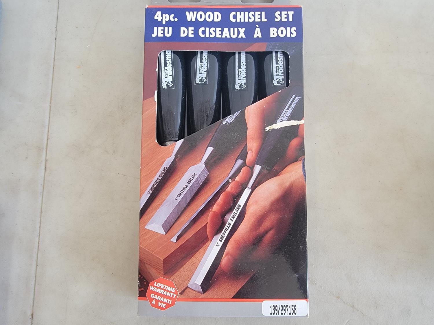 Mastercraft 3/8 inch drive tune-up kit, 50 piece socket set, 4 piece wood chisel set, 6 piece C-clamp set, Mastercraft sanding drum set
