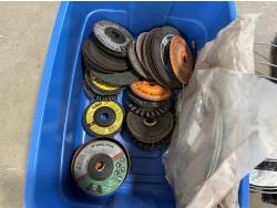 1387 Qty of Welding Supplies, Cables, Screens and Grinding Discs