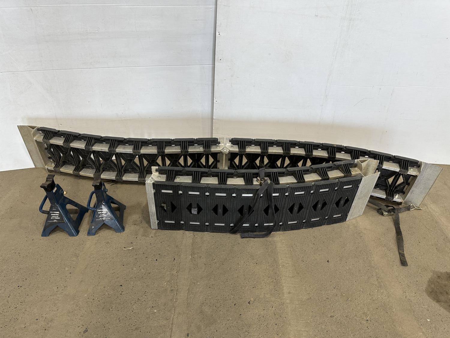 1251 Set of 7 Ft Aluminum Folding Ramps and Pair of 3 Ton Jack Stands