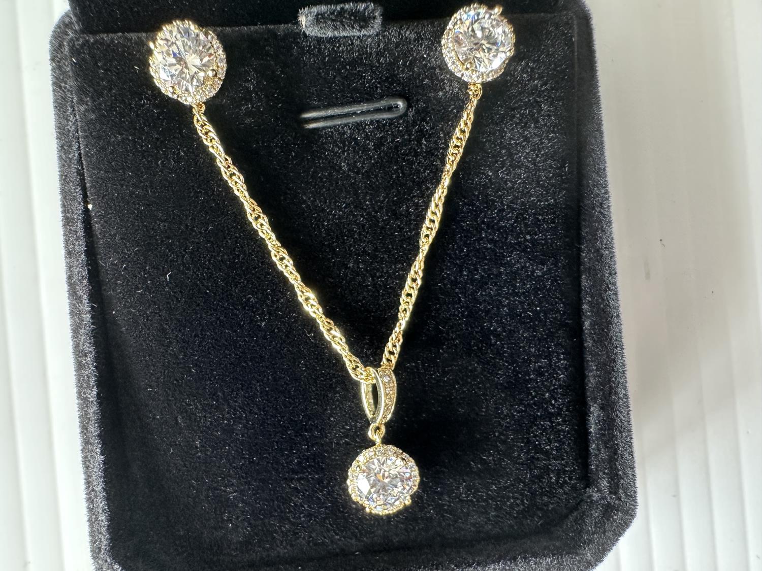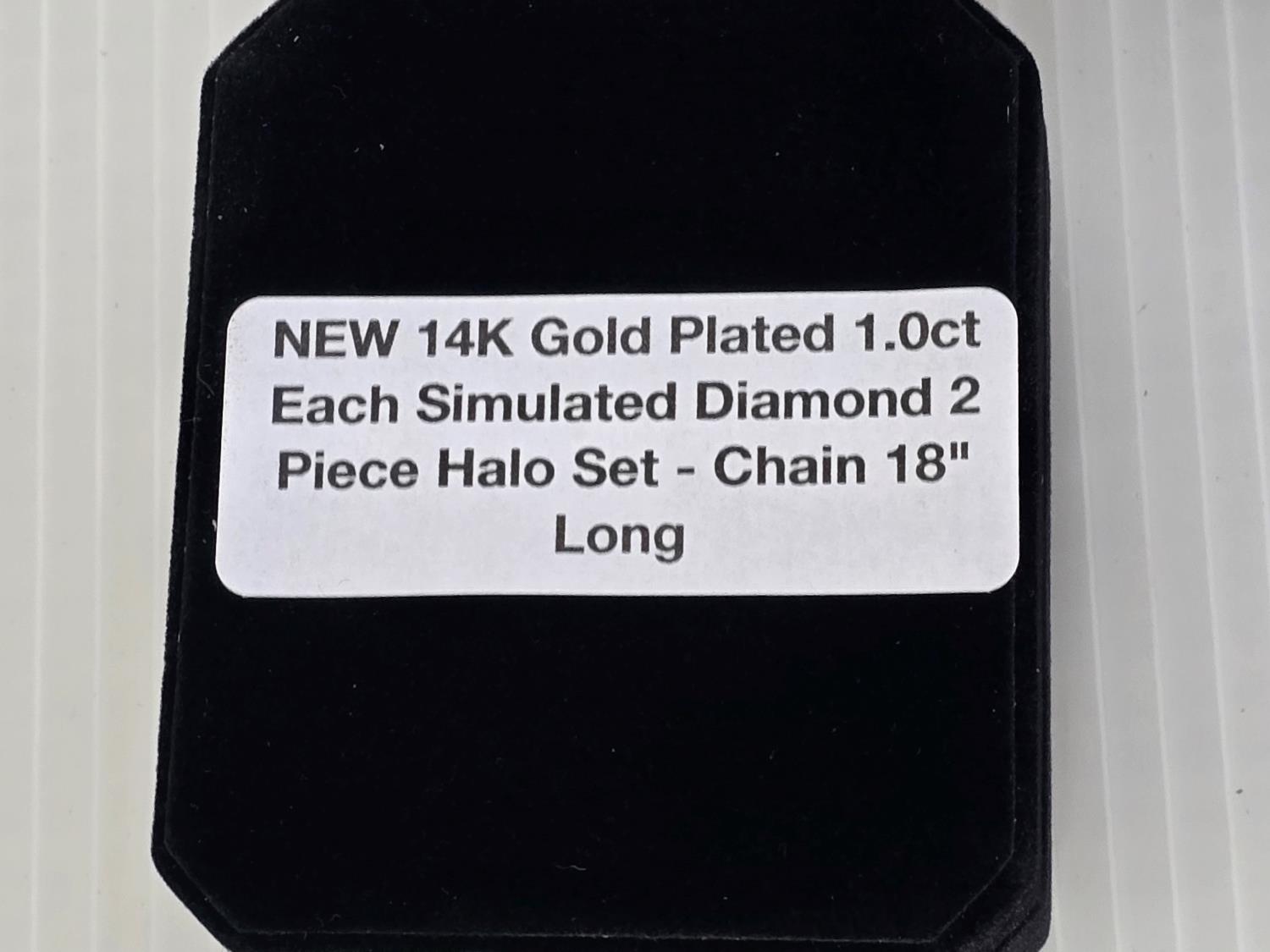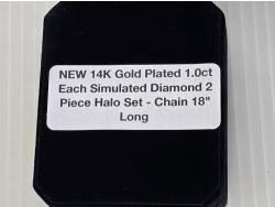 1576 Smartlife 14K Gold Plated 1.0 Ct Each Simulated Diamond 2 Piece Halo Set (Unused)