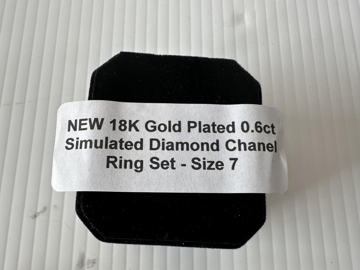 1571 Smartlife 18K Gold Plated 0.6 Ct Simulated Diamond Chanel Ring Set - Size 7 (Unused)