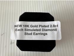1573 Smartlife 18K Gold Plated 2.0 Ct Each Simulated Diamond Stud Earrings (Unused)