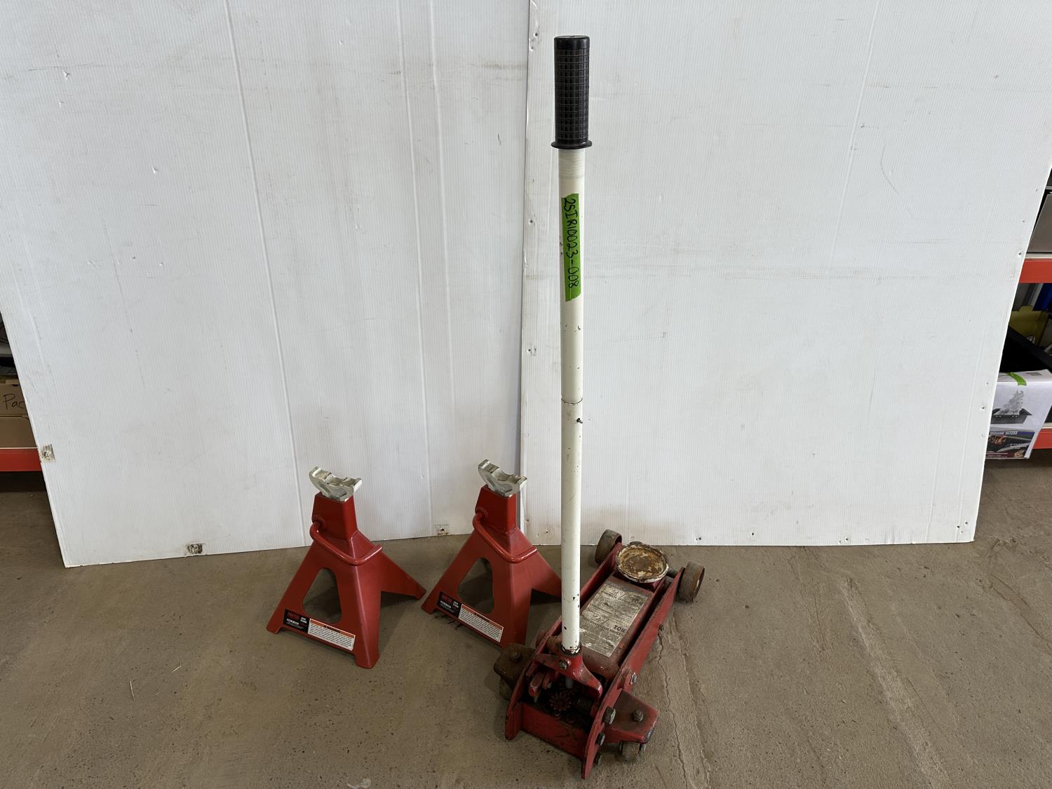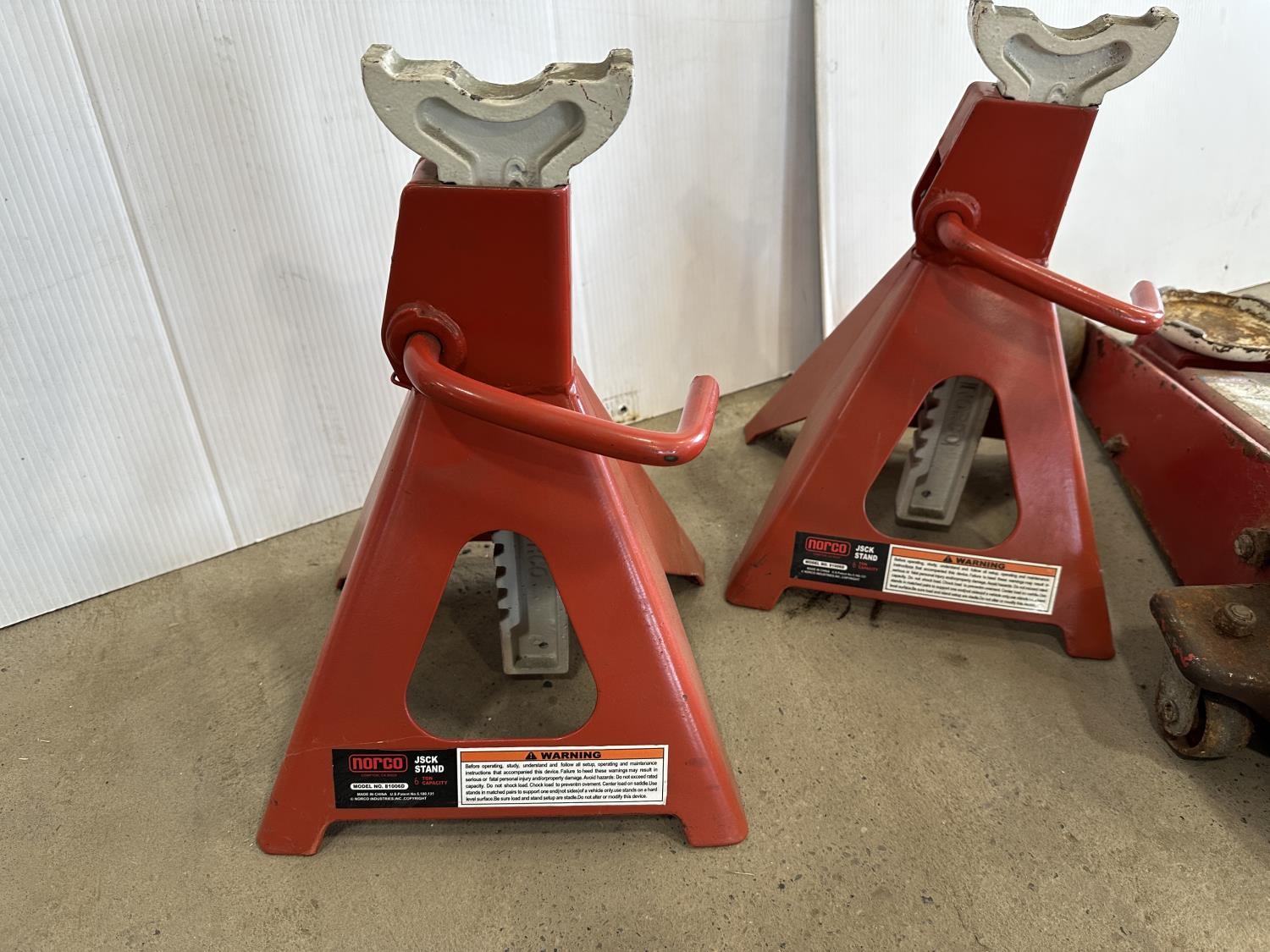 1010 Westward 2-1/2 Ton Hydraulic Floor Jack and (2) Norco 6 Ton Jack Stands (Inoperable)