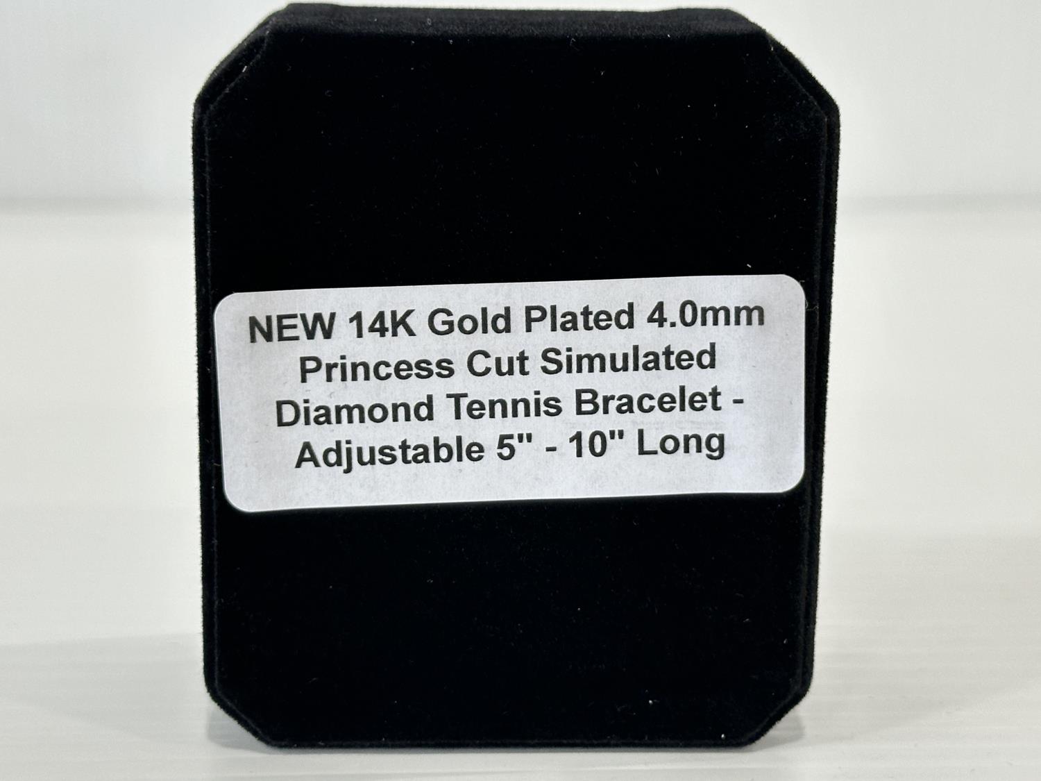 1678 Smartlife 14K Gold Plated 4.0 mm Princess Cut Simulated Diamond Tennis Bracelet (Unused)