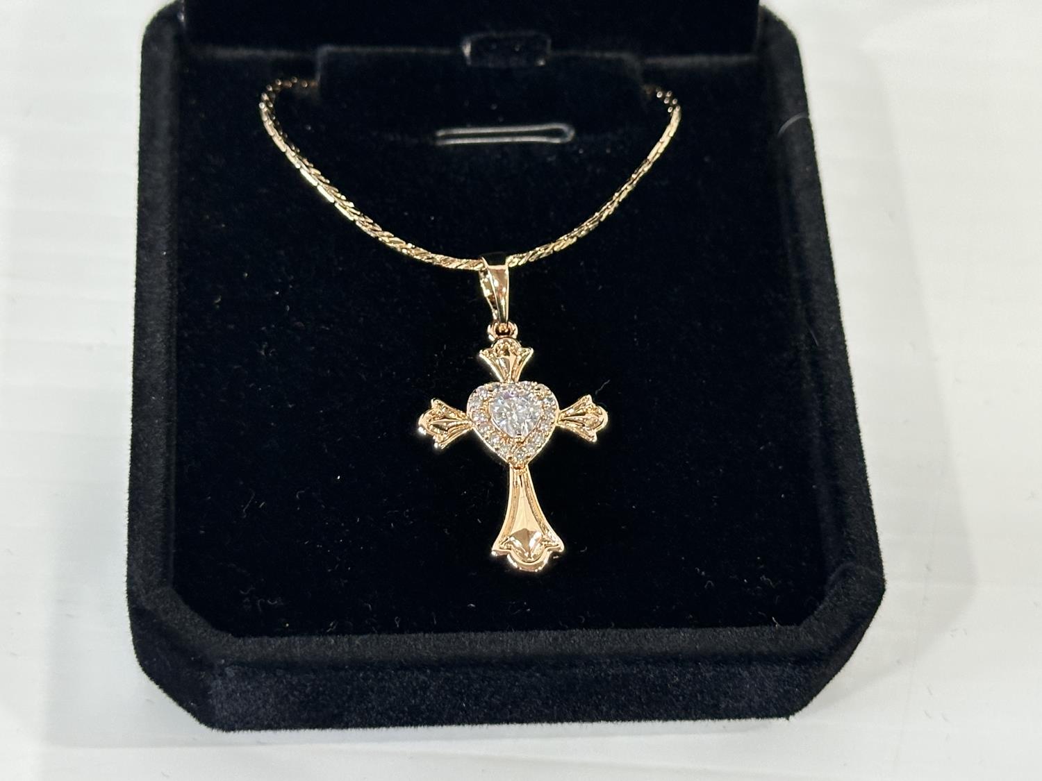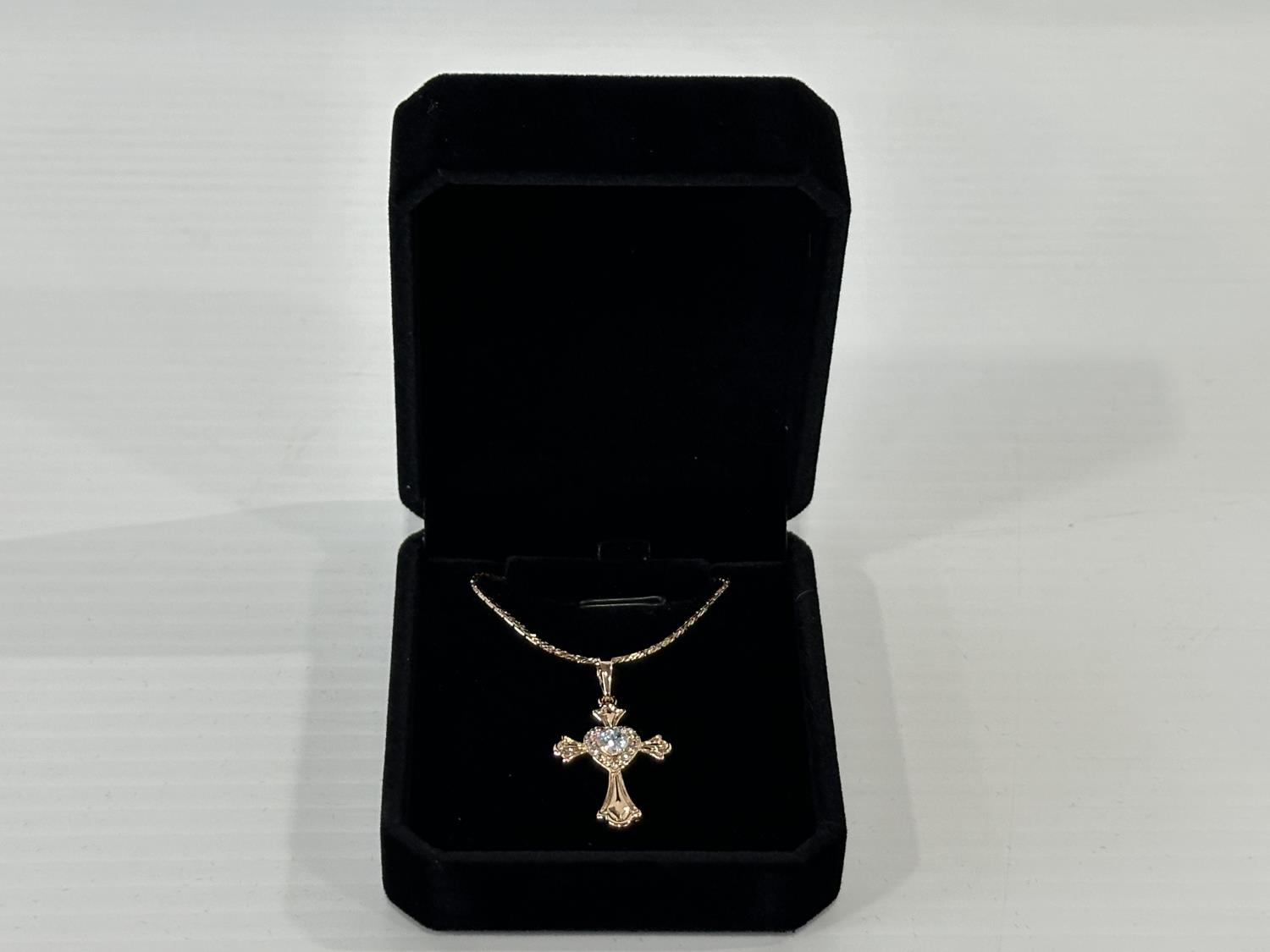 1683 Smartlife 18K Gold Plated 0.5 Ct Heart Cut Simulated Diamond Cross Necklace (Unused)