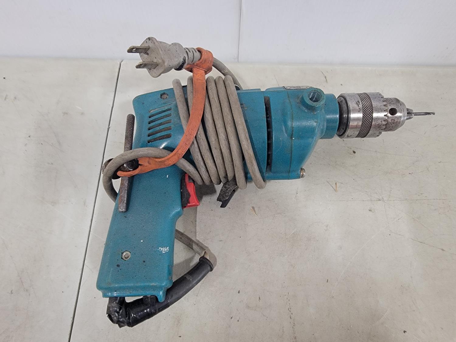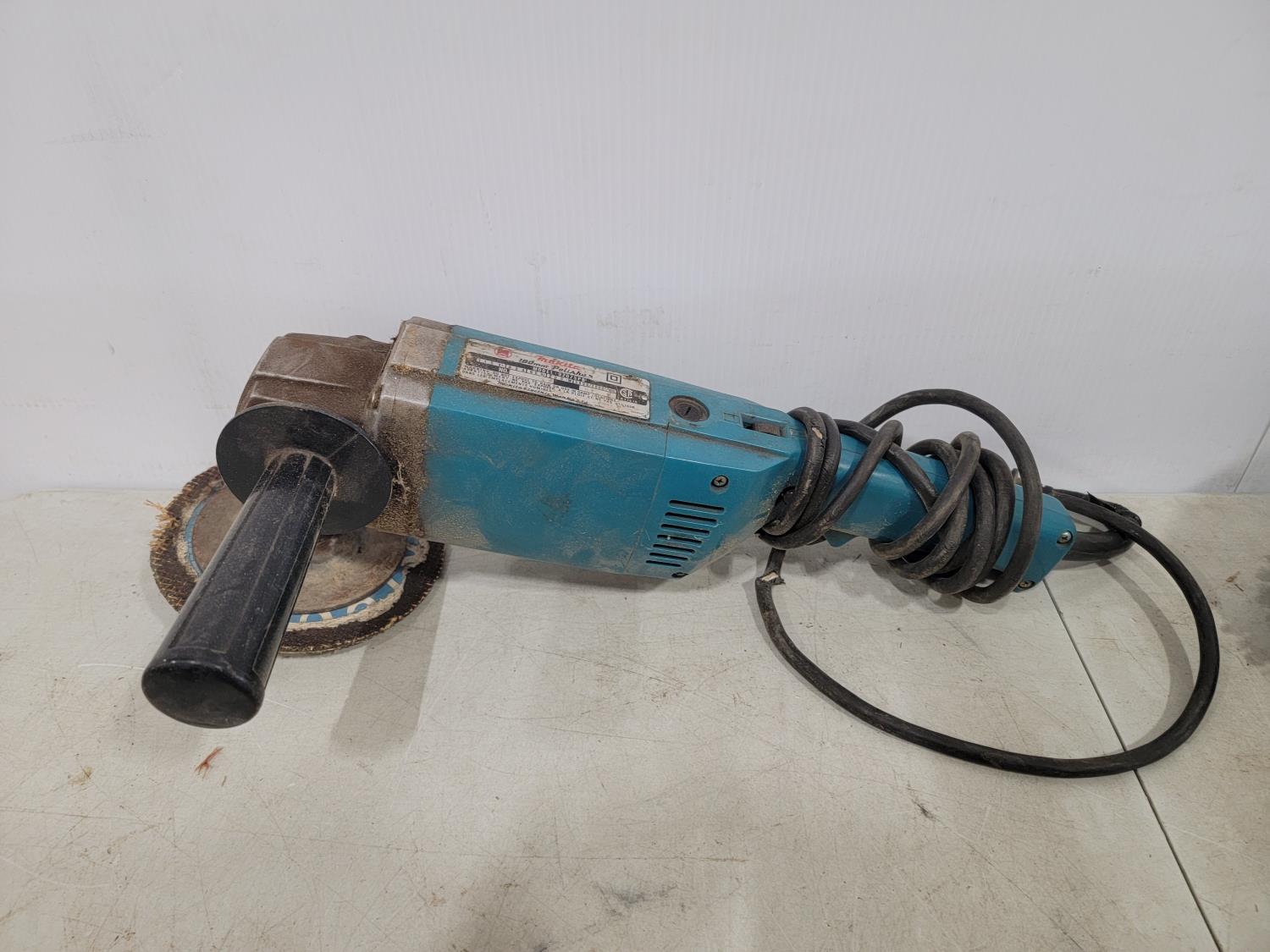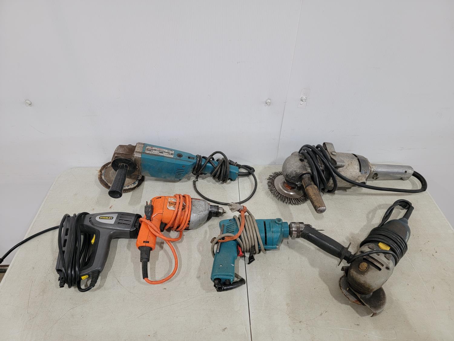 Makita 180 mm polisher, Black & Decker 7 inch industrial sander, Mastercraft 4-1/2 inch angle grinder, (2) drills, Stanley electric stapler