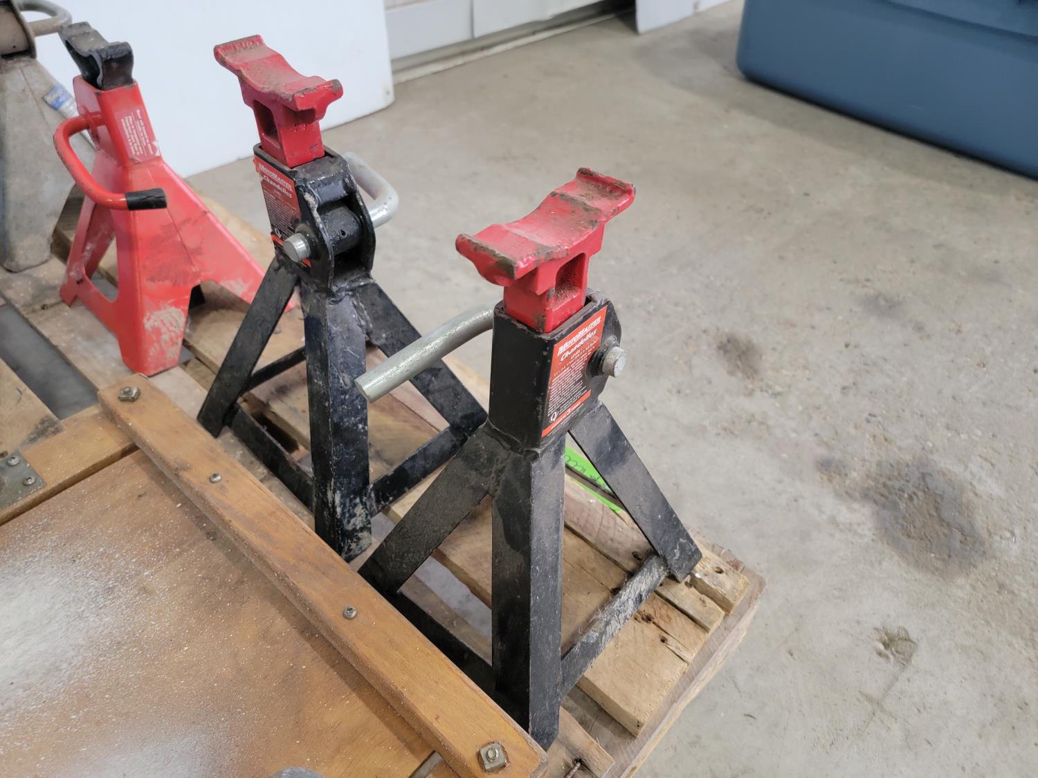 1268 (4) Jack Stands, ATV Tire Chains, Mechanics Creeper and 12,000 lb Electric Winch with Remote
