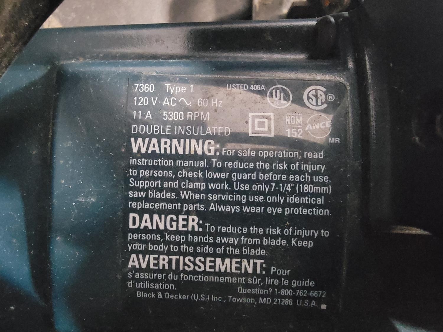1348 Black & Decker 7-1/4 Inch Circular Saw, Cut-Off Discs and Tile Saw