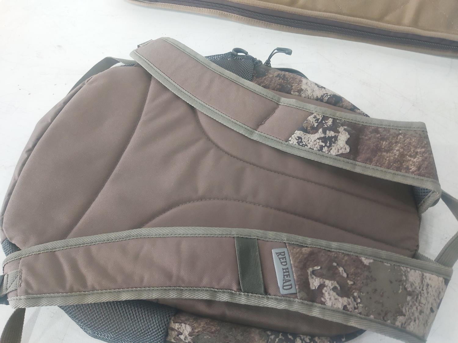 1606 Cabela's 52 Inch Rifle Case, Folding Knife and Light Combo Set and Red Head Backpack