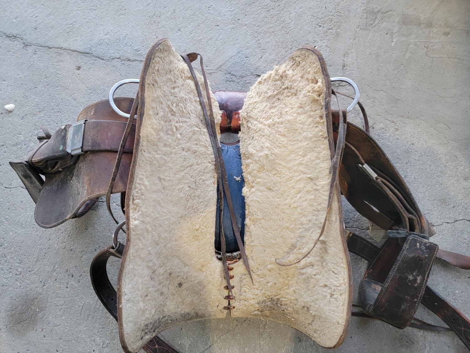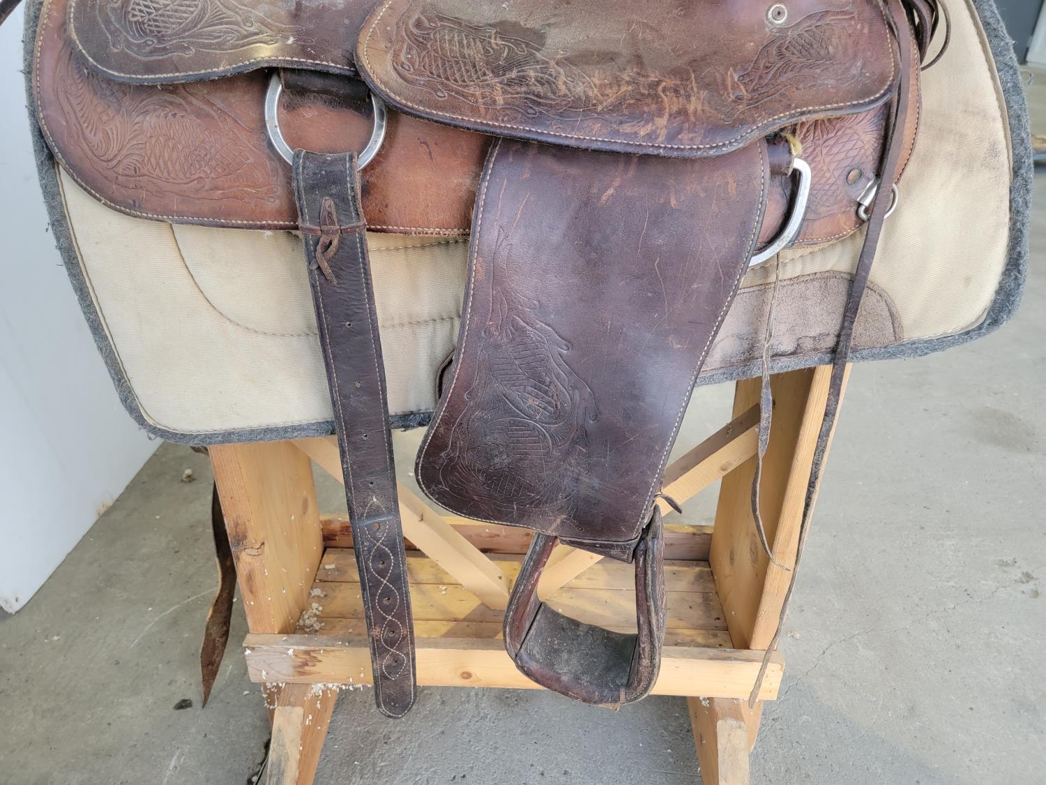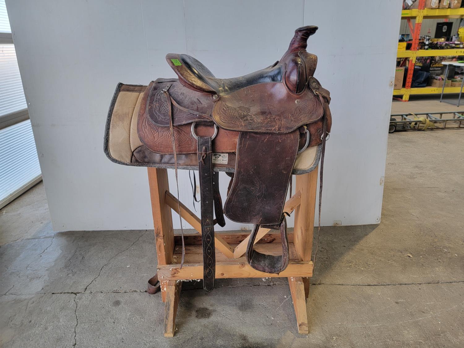 1659 Eamors 16 Inch Western Saddle, Diamond Wool Saddle Pad and Wooden Saddle Stand