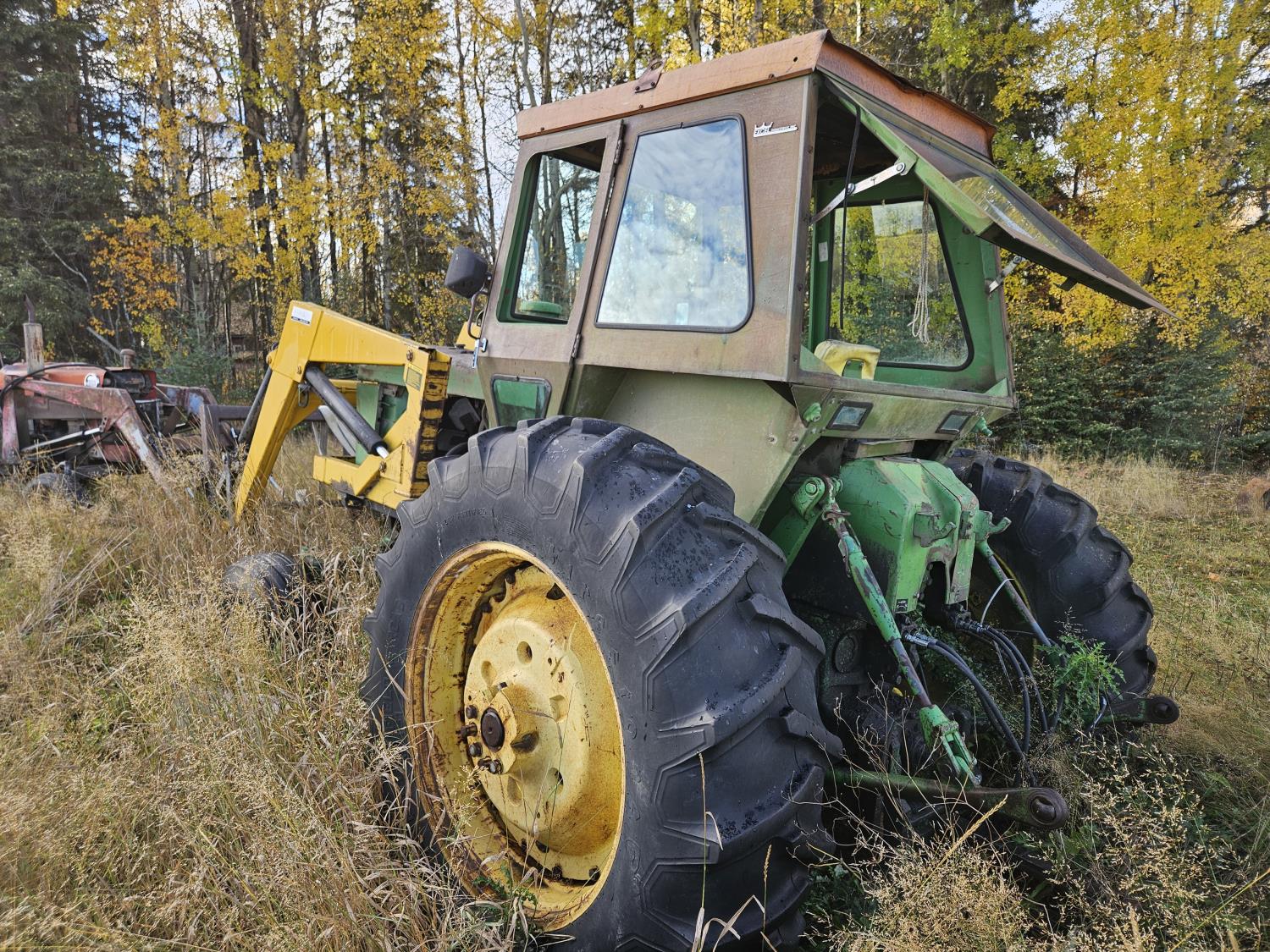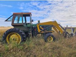 Loader, John Deere 6.6 L 6 cylinder diesel engine, 135 PTO HP, 8 speed partial synchro transmission, cab, 1000 PTO, 3 point hitch, 2 rear hydraulic outlets, 11.0-16 front tires, 20.8-38 rear tires