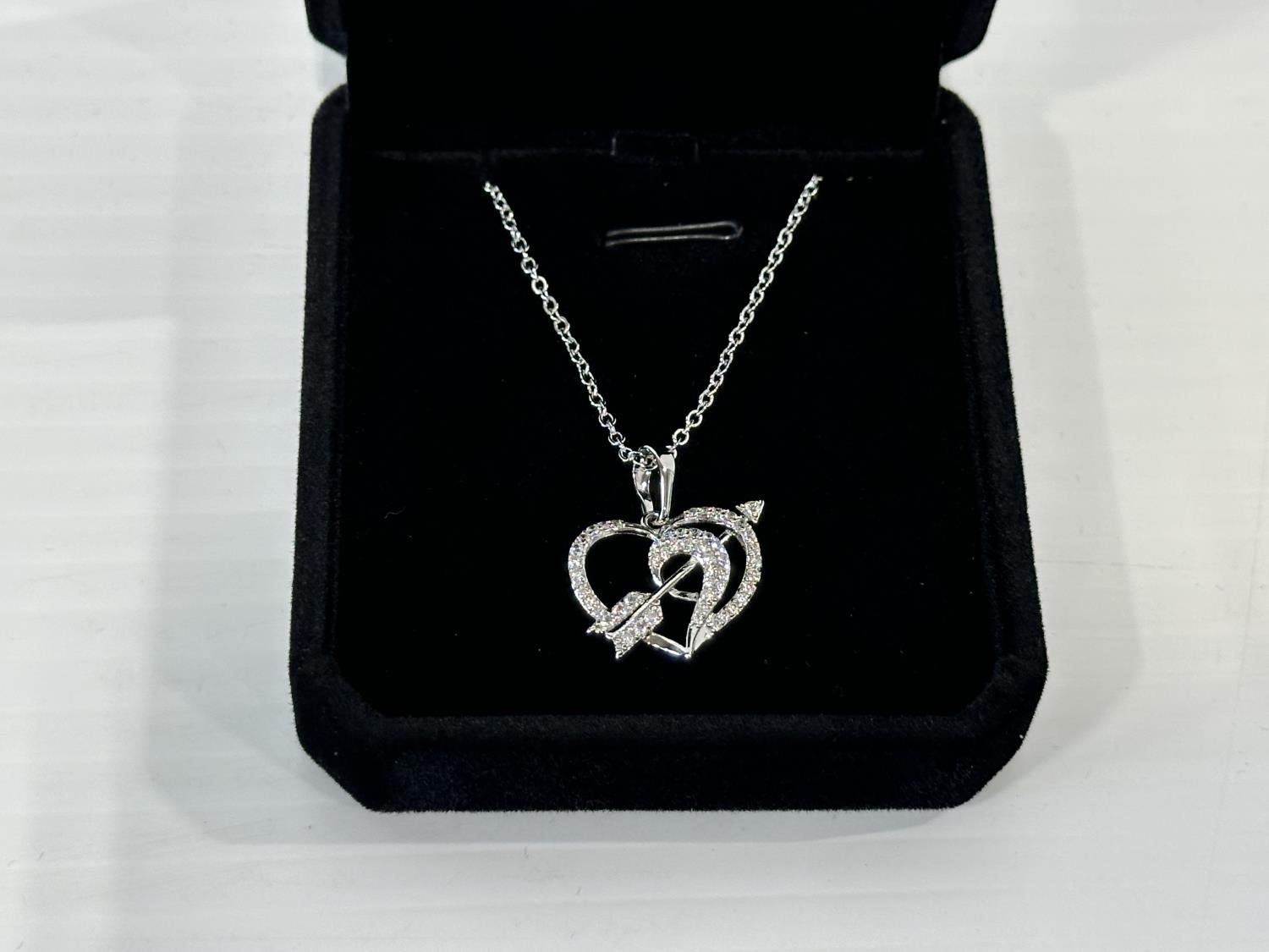 1680 Smartlife Platinum Plated 22.0 mm Simulated Diamond Arrow Heart Necklace (Unused)