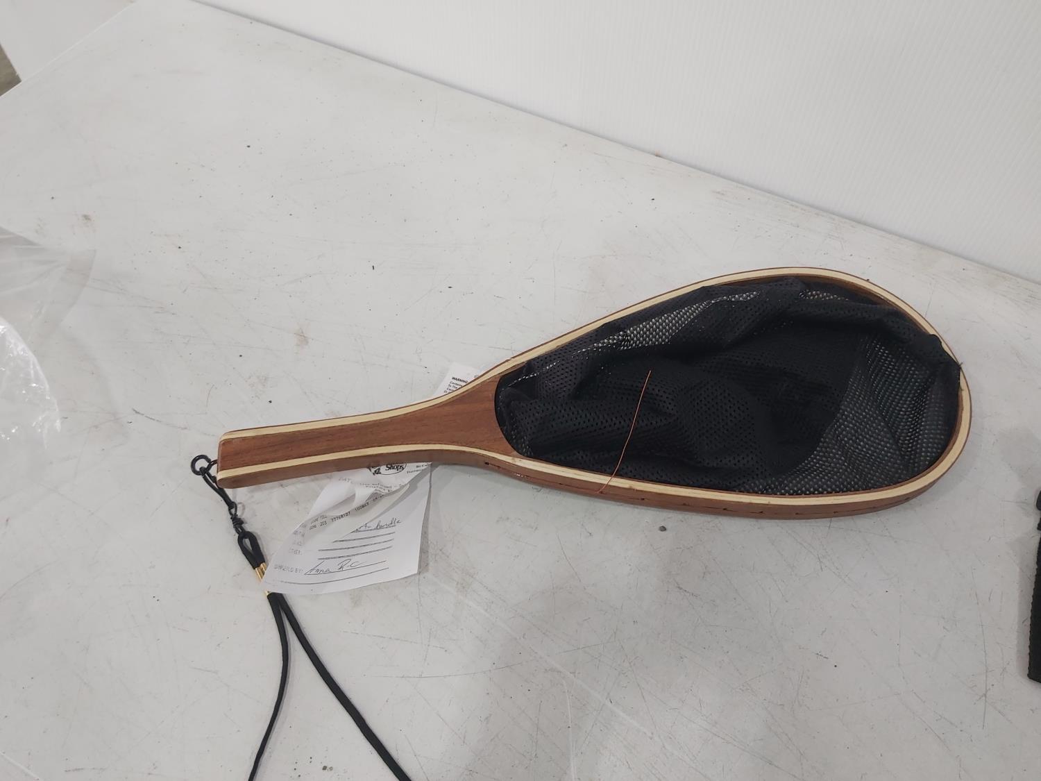 tackle organizer, (2) spools of 8 lb fishing line, fly line, (2) fender holder straps, shoulder holster, net, knife