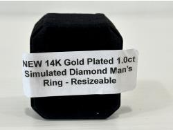 1671 Smartlife 14K Gold Plated 1.0 Ct Simulated Diamond Men's Ring - Resizeable (Unused)