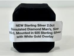 1676 Smartlife Sterling Silver 2.0 Ct Simulated Diamond Men's Ring - Size 10.0 (Unused)