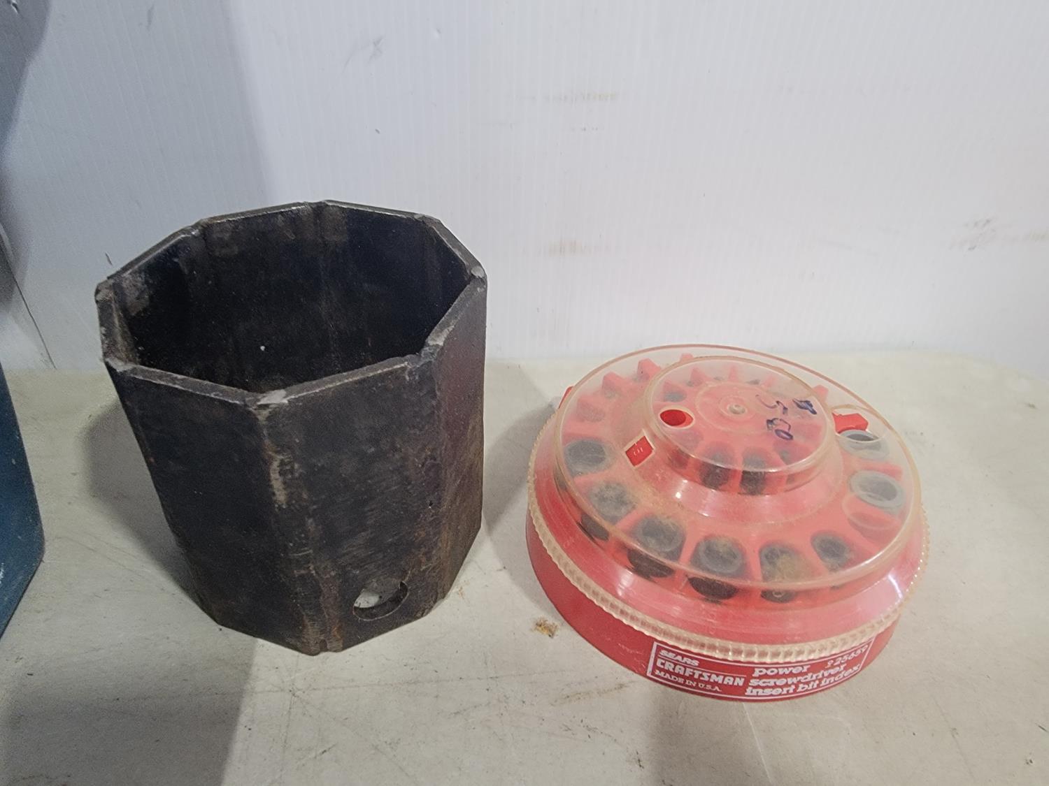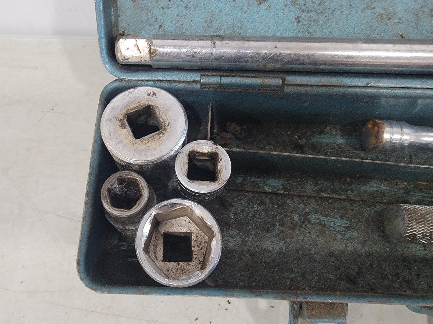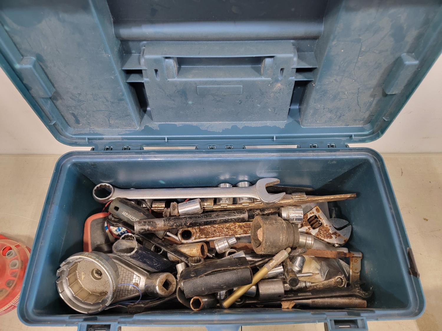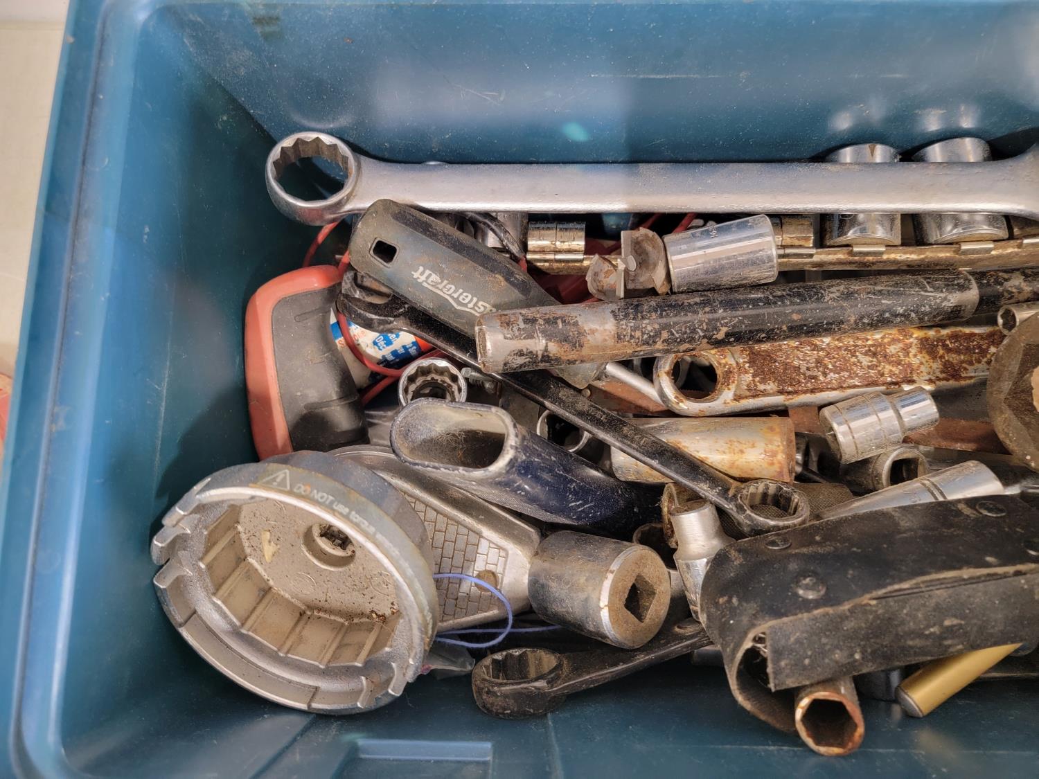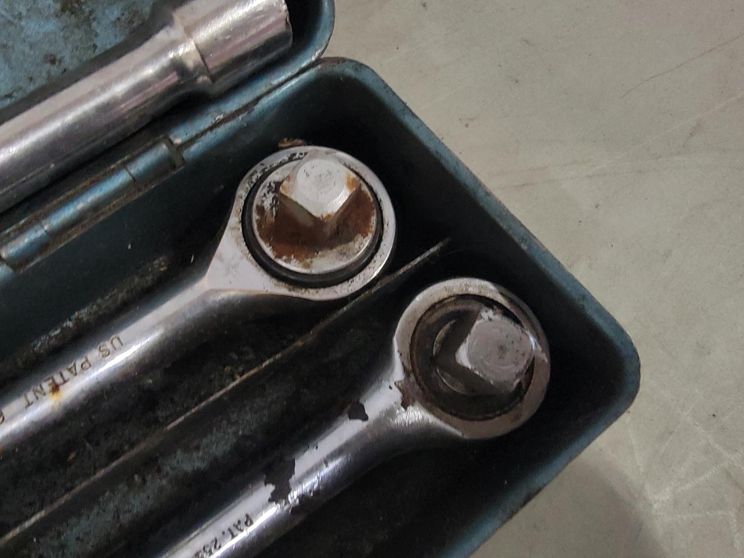 1/2 inch drive ratchet wrenches and sockets, clamps, screwdrivers, vise grips, combination wrenches, bits