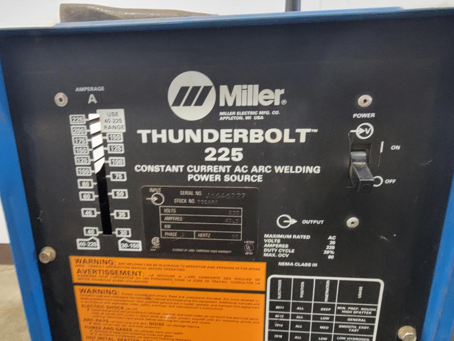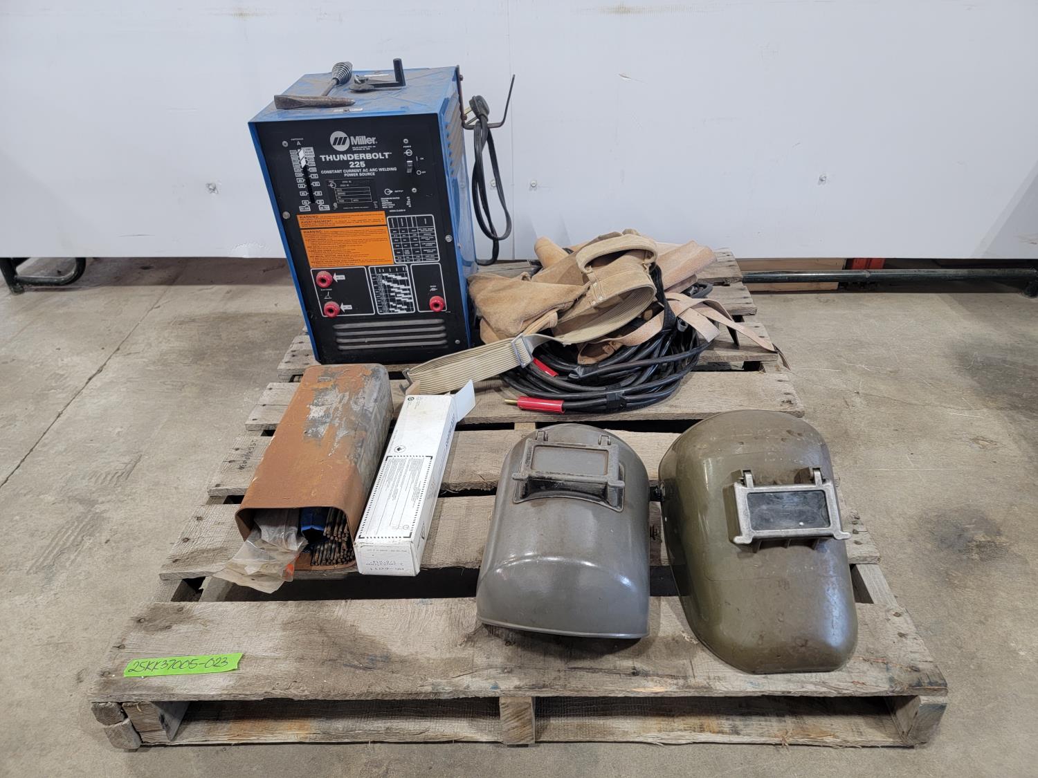 1292 Miller Thunderbolt 225 Welder, (2) Helmets, Electrodes, Tool Belt and Apron
