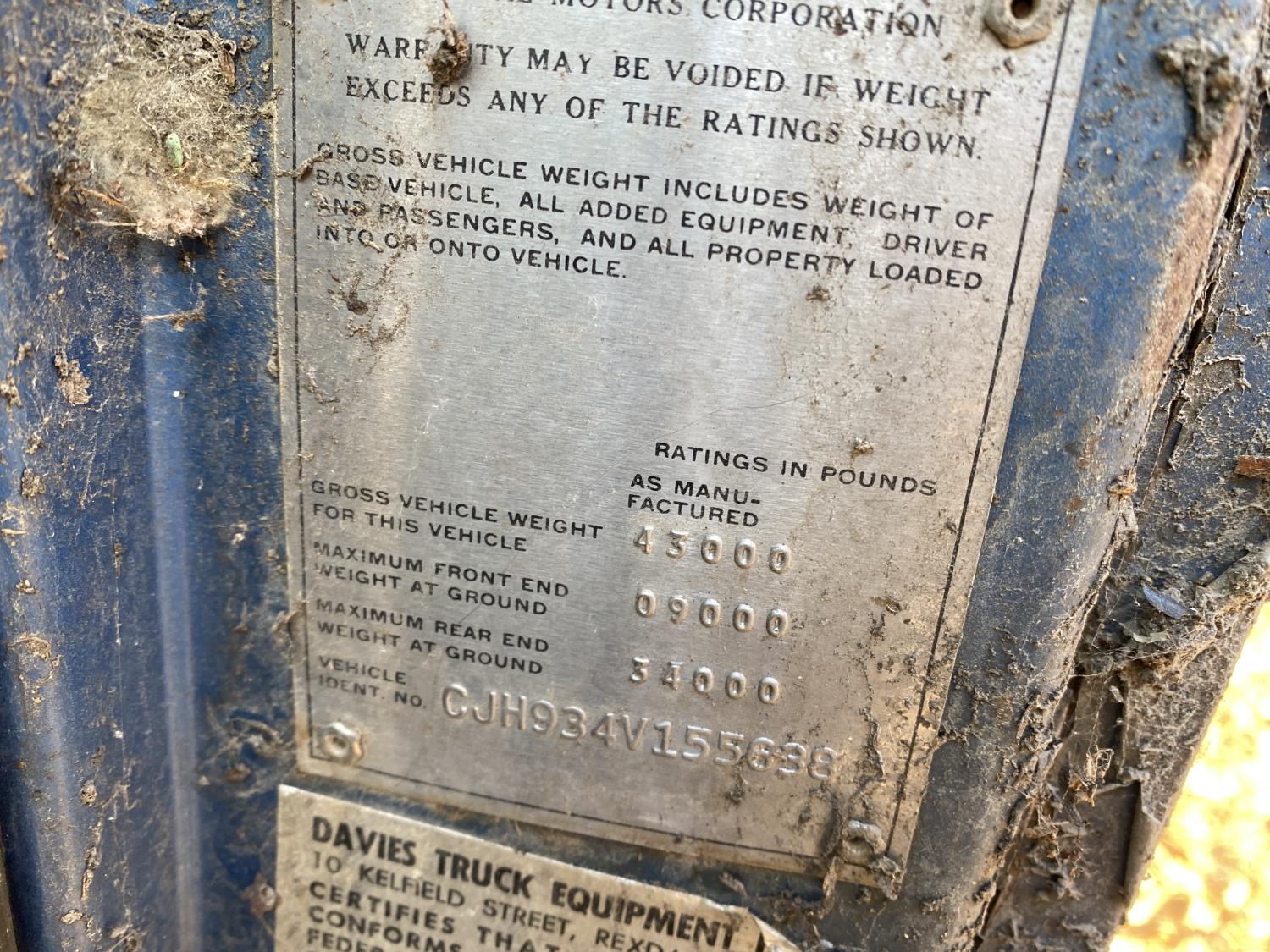 Detroit 8V71 V8 engine, Eaton Fuller 13 speed manual transmission, A/C, spring suspension, 9,000 lb front axle, 34,000 lb rear axles, 10-20 tires