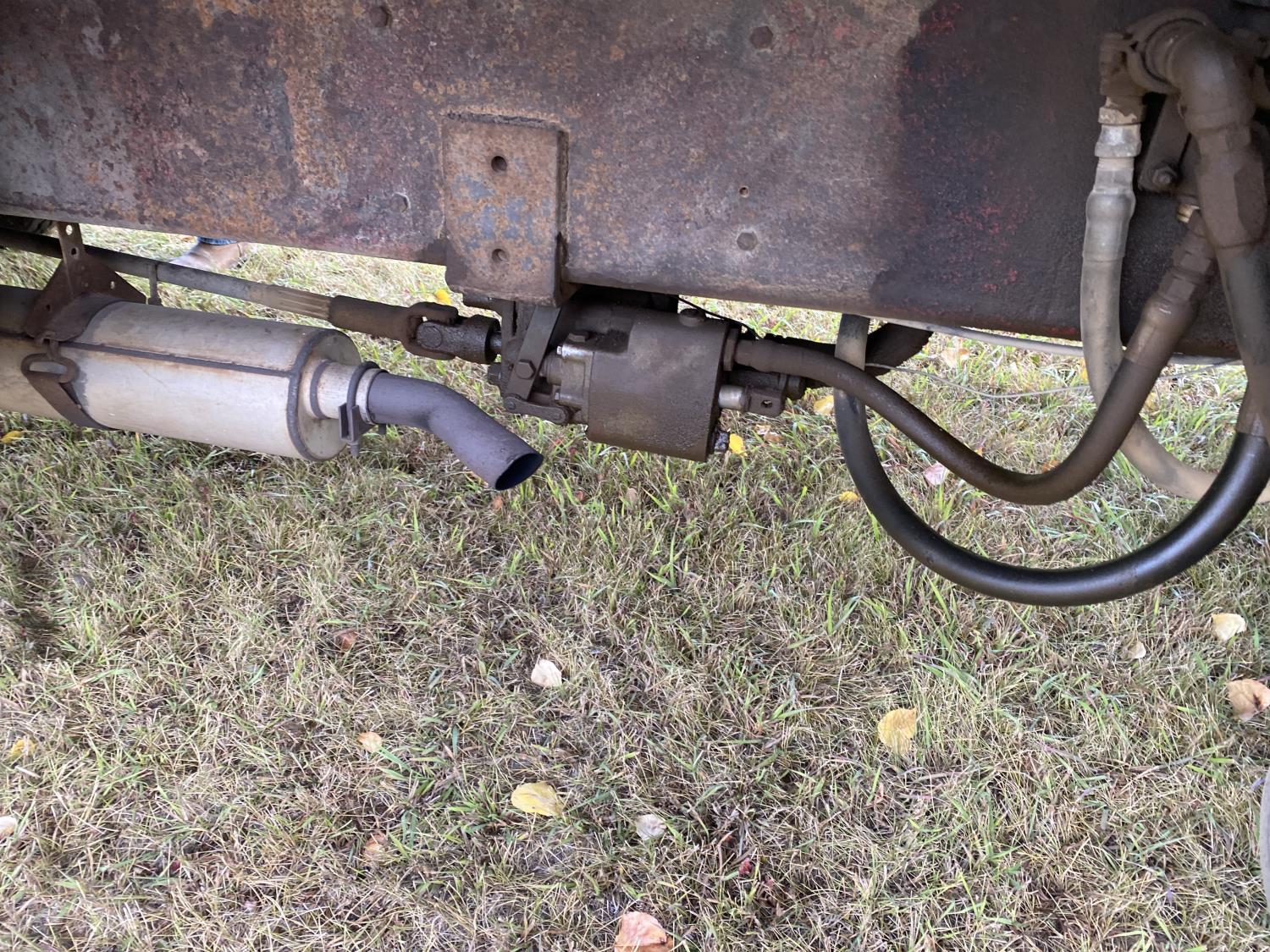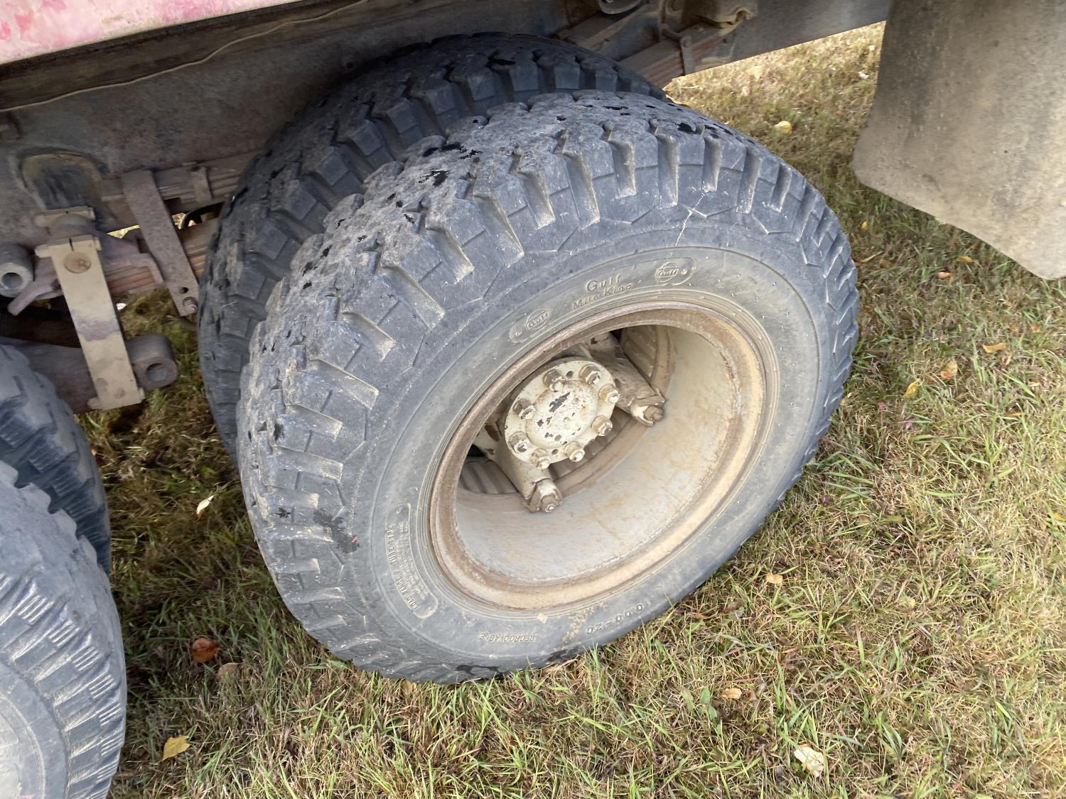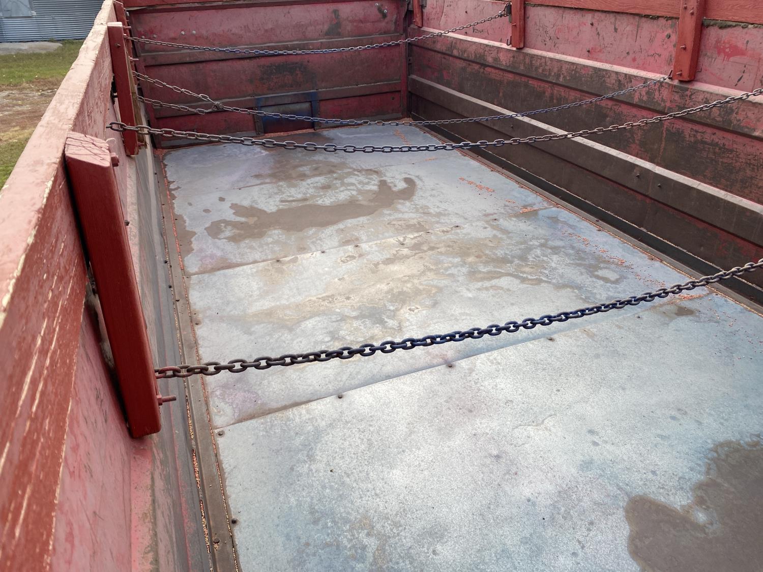 Ford V8 199 HP gas engine, 5X2 manual transmission, 20 ft box, steel box w/ hoist, PTO pump, spring suspension, 153 inch WB, 10-20 tires