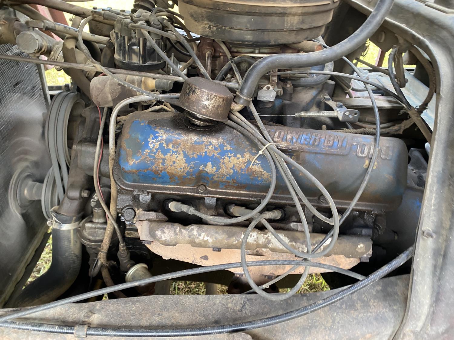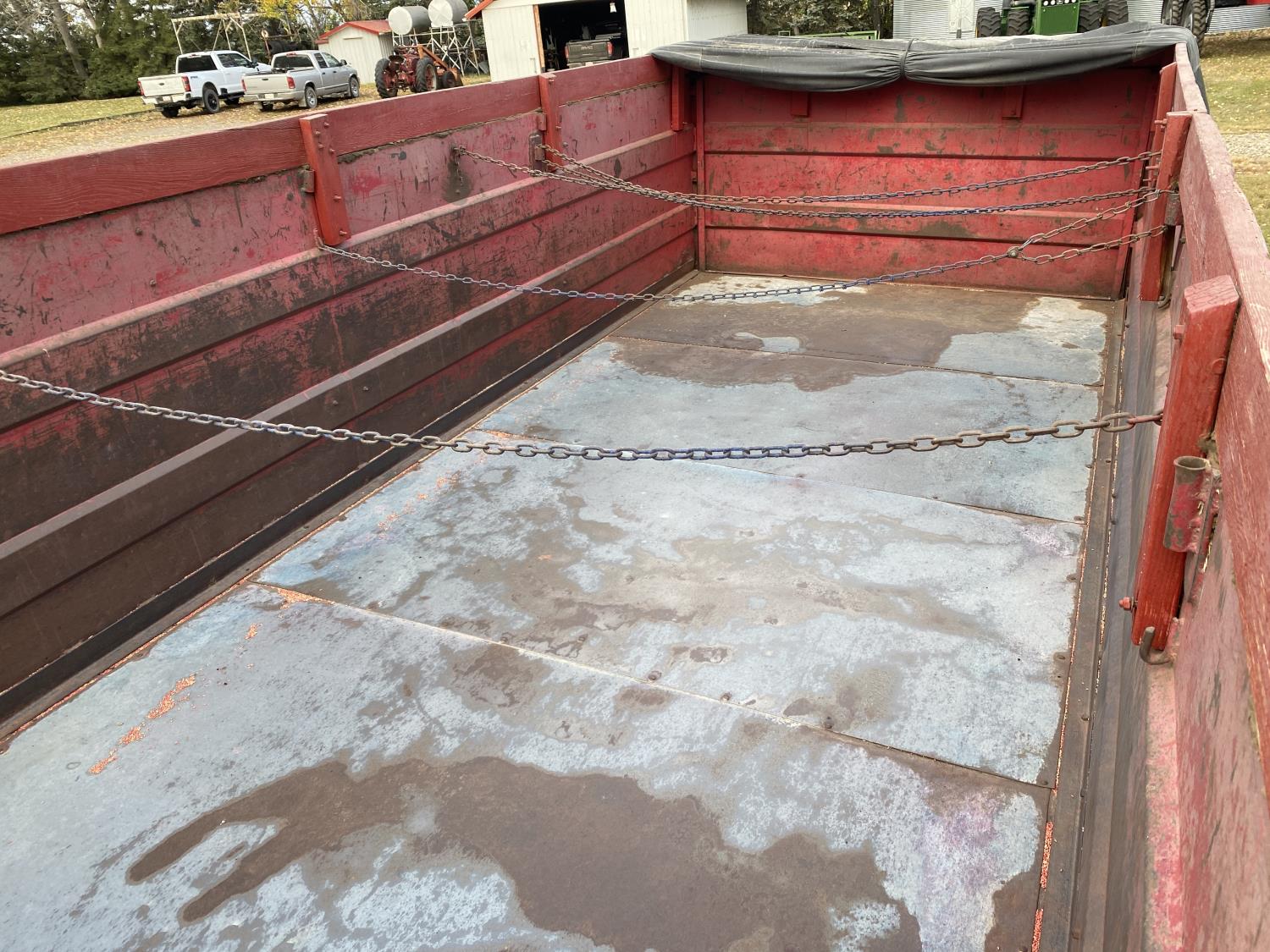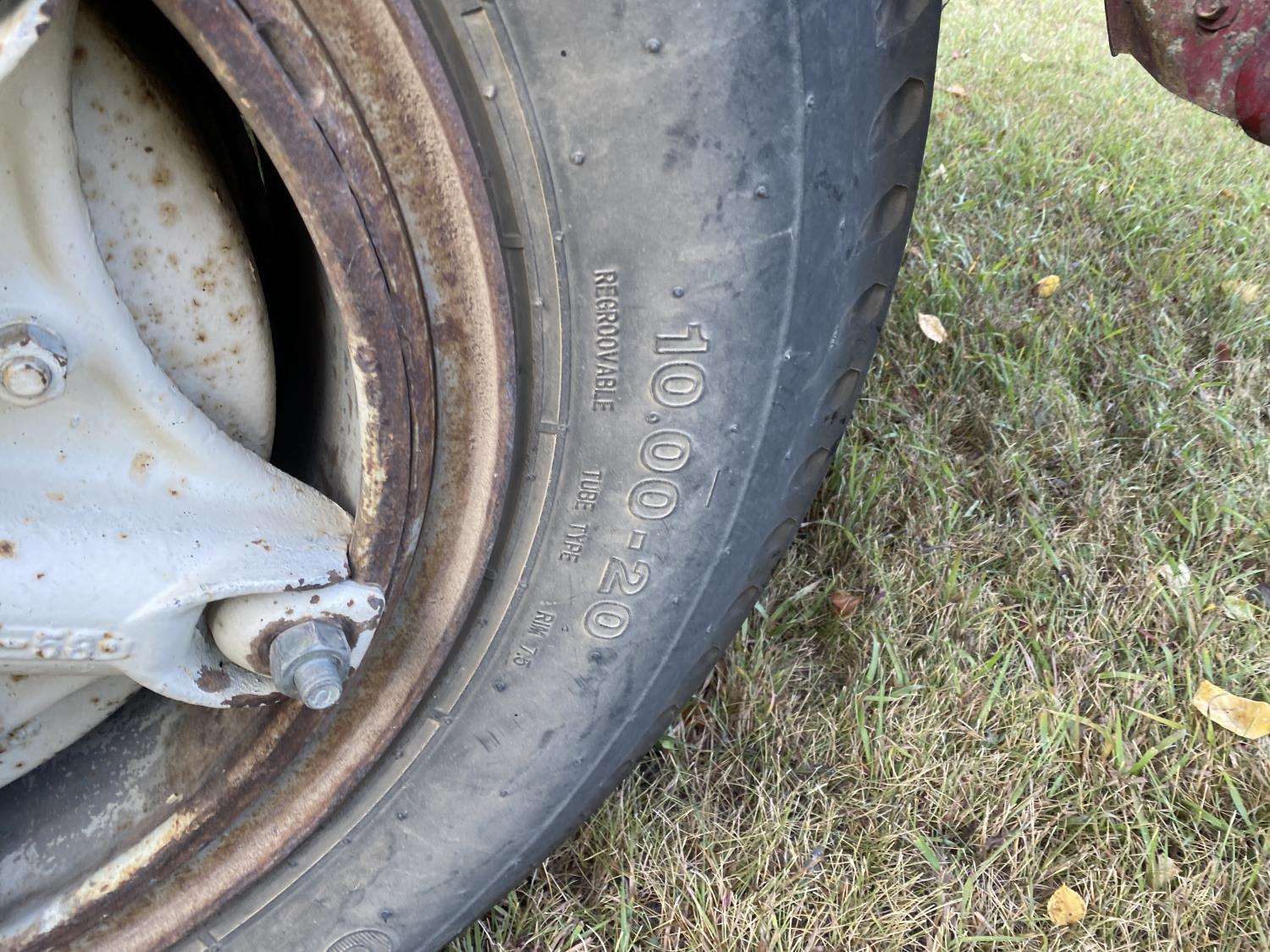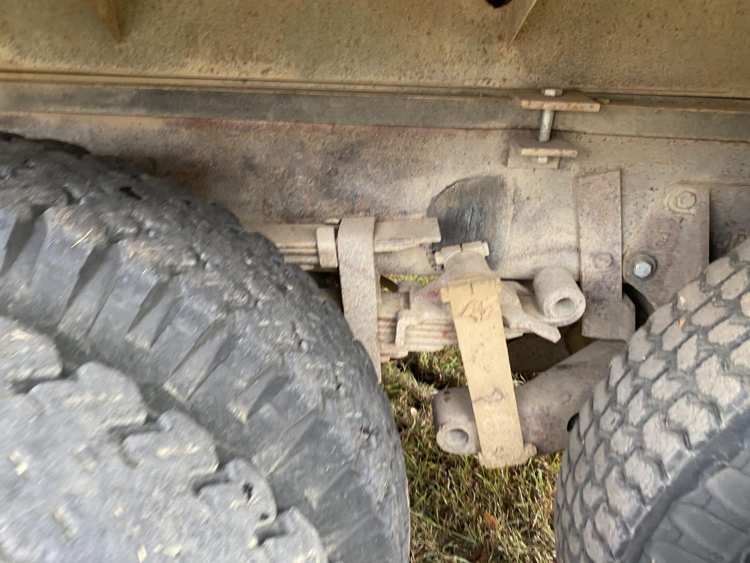 Ford V8 199 HP gas engine, 5X2 manual transmission, 20 ft box, steel box w/ hoist, PTO pump, spring suspension, 153 inch WB, 10-20 tires