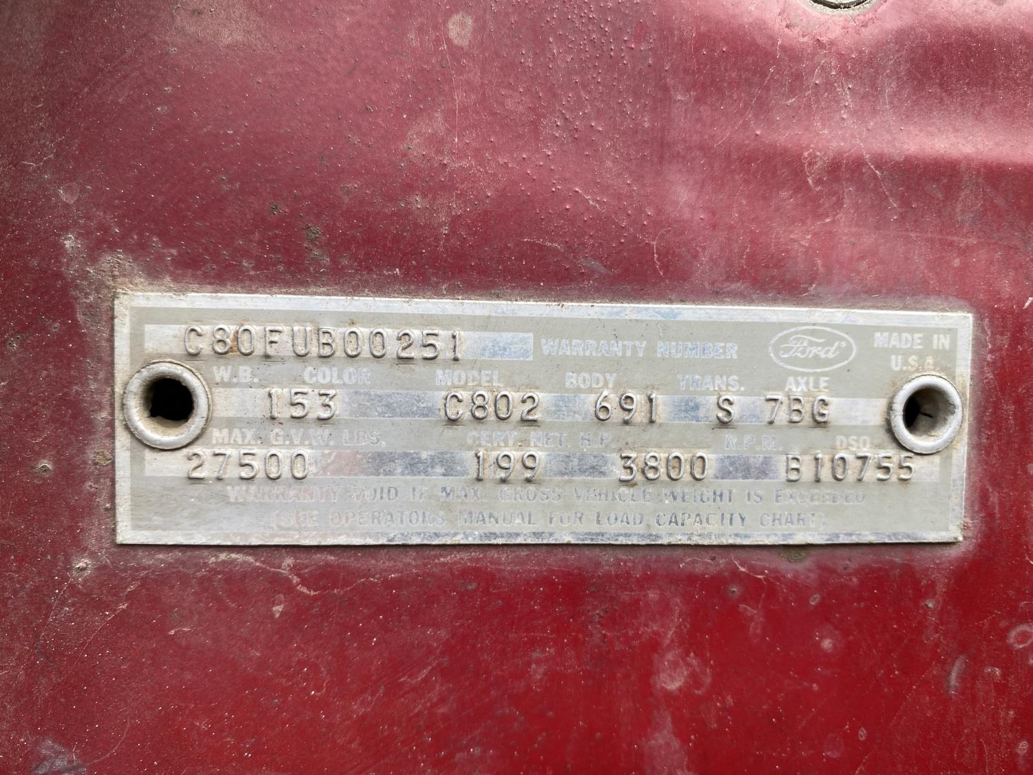 1976 Ford C802 S/A w/ Tag Cab Over Grain Truck
