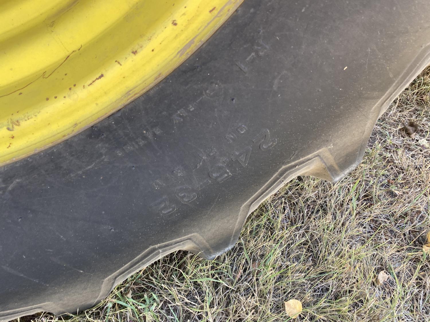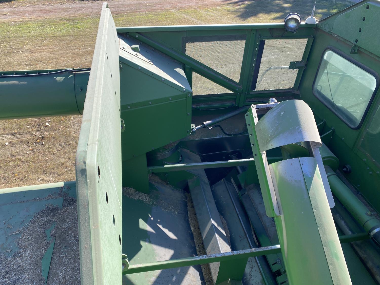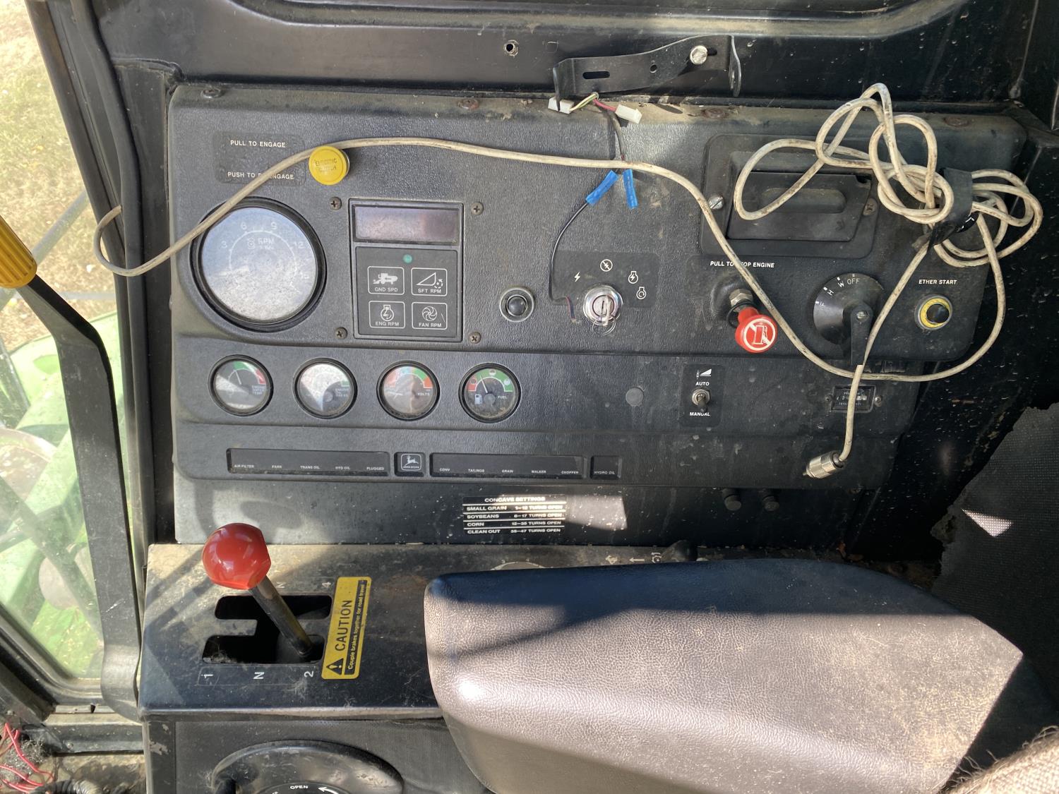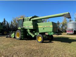 John Deere 214 14 ft pick-up header, variable speed reel, chopper/straw spreader, 16 ft auger, 24.5-32 front tires, 11.25-24 rear tires