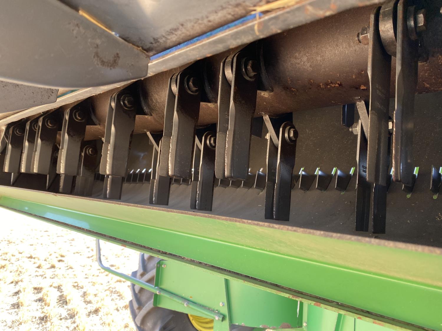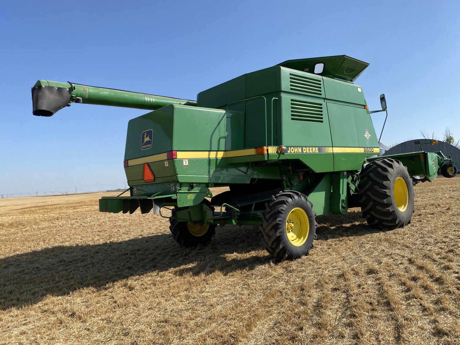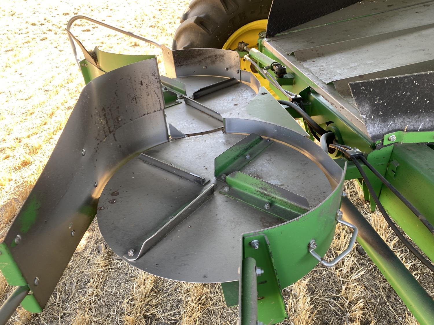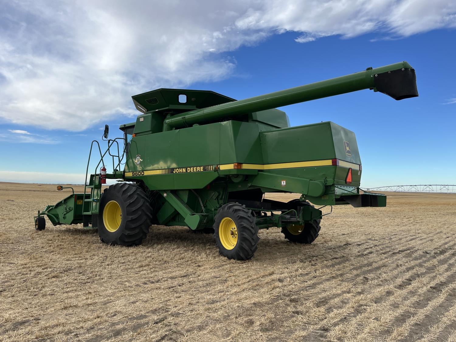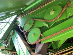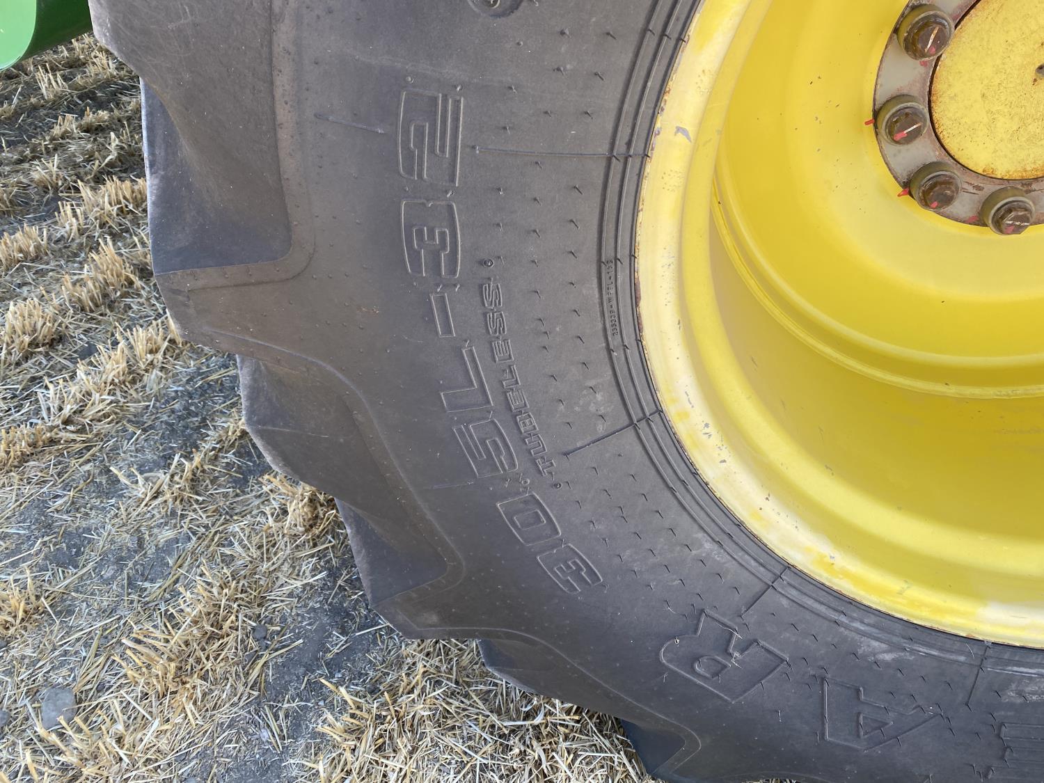 1998 John Deere 914 14 ft pick-up header, variable speed reel, fore & aft, reverser, rock trap, chaff spreader, fine cut chopper/spreader, grain tank extensions, 18 ft auger, A/C, buddy seat, 30.5-32 front tires, 16.9-26 rear tires