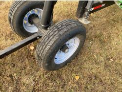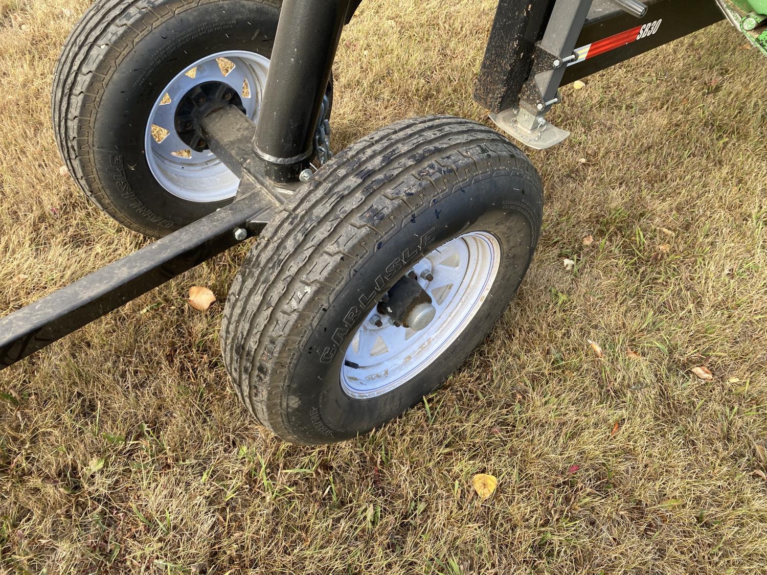 pickup reel, fore & aft, poly skid plates, Arc Fab SB30 transport, John Deere 9600, air foil reel, 225/75D15 tires