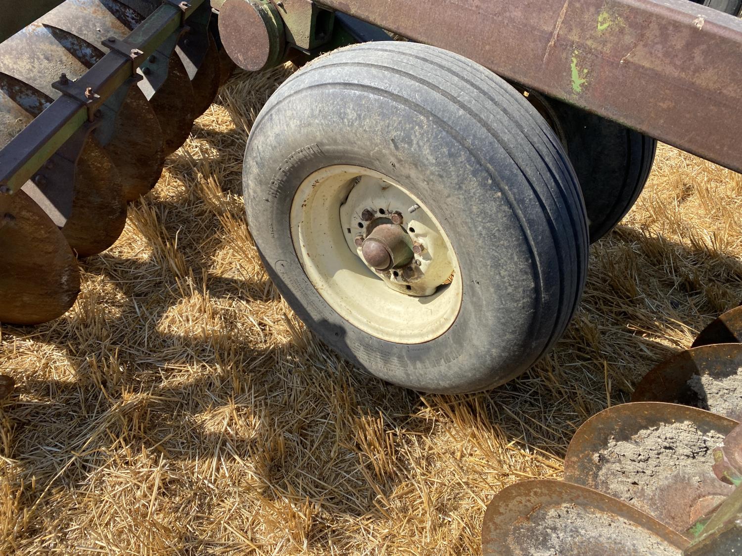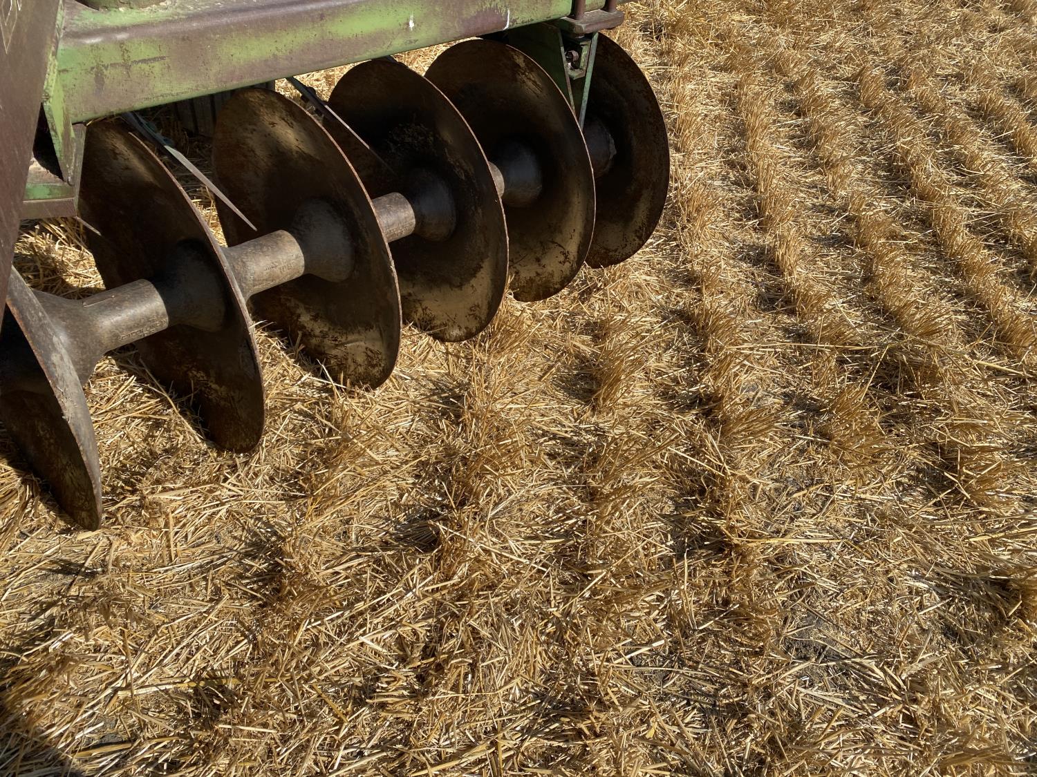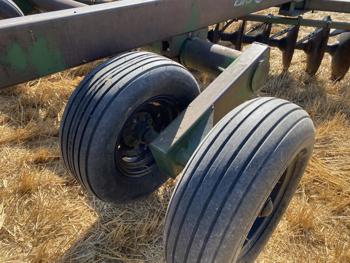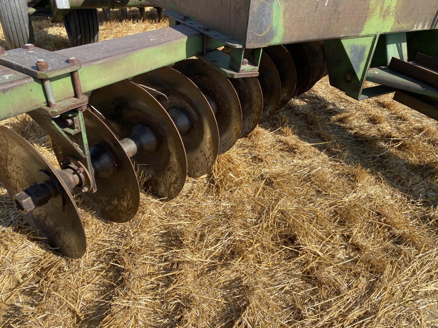 front: 10 inch spacing smooth 24 inch discs, rear: 10 inch spacing smooth 24 inch discs, floating hitch, scrapers, 11-15 main frame tires