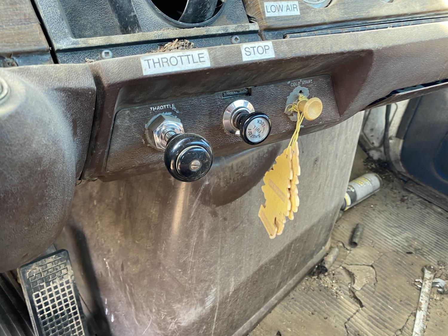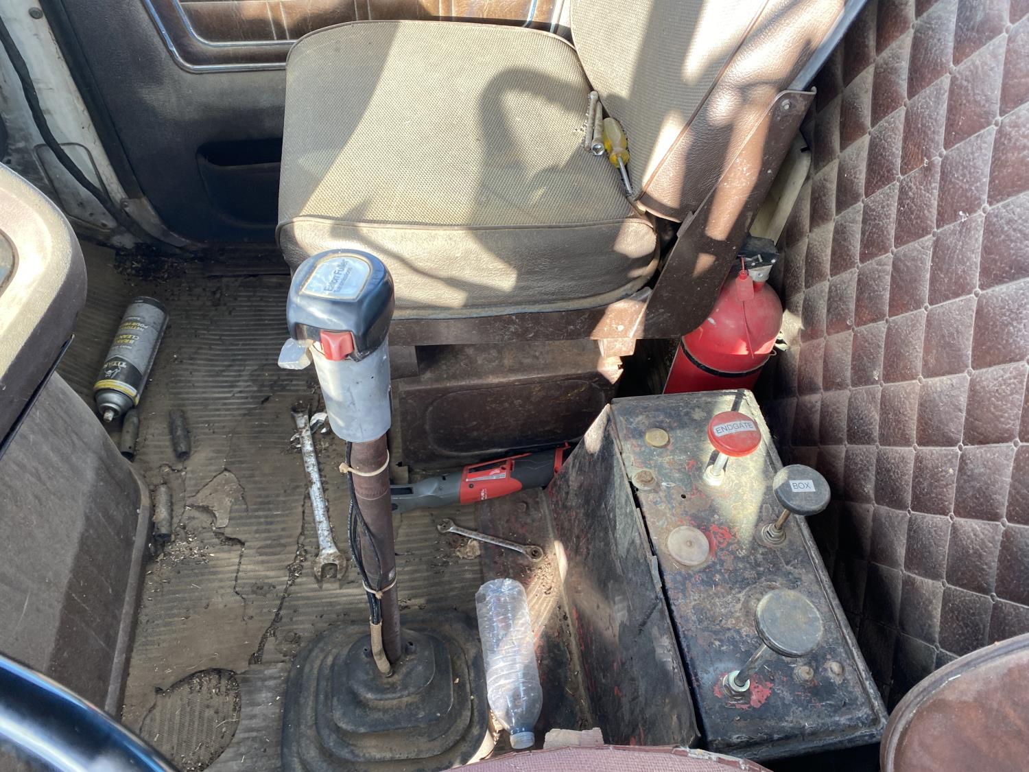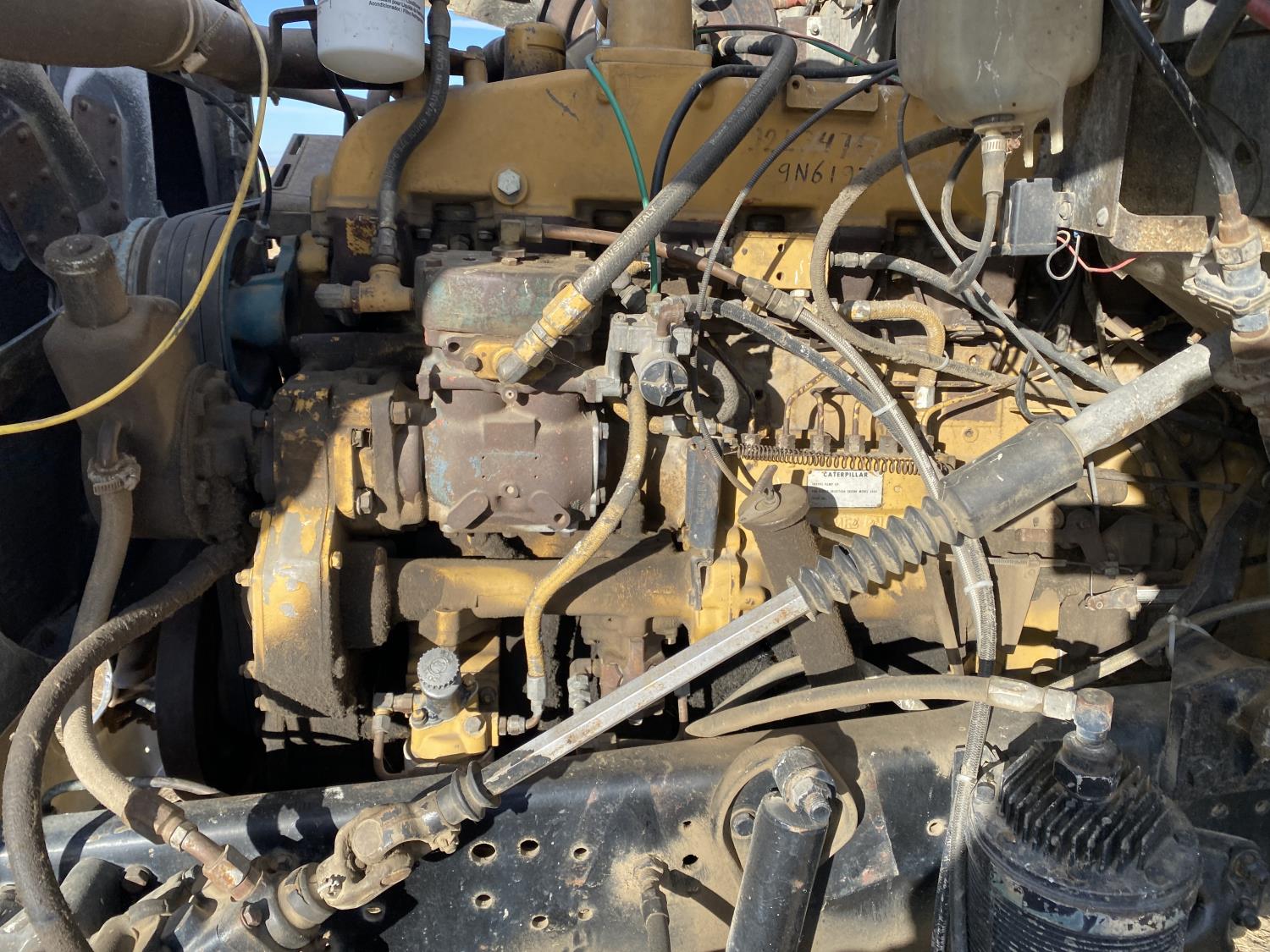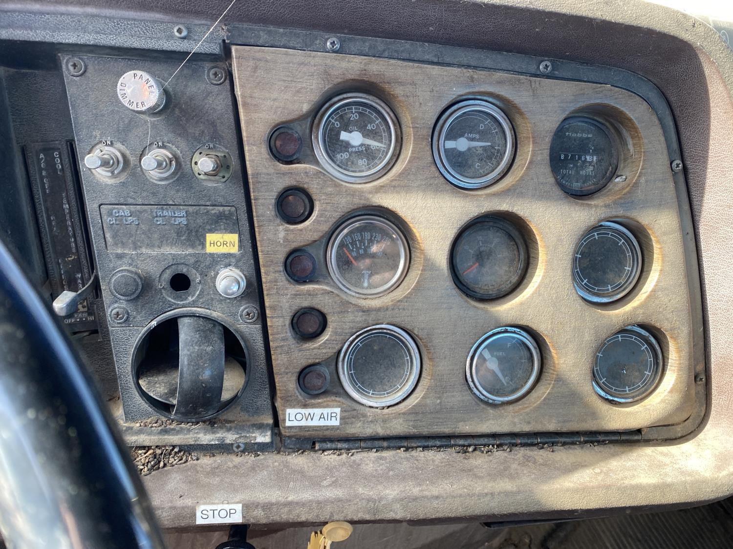 Caterpillar 3406 14.6 L 6 cylinder 325 HP engine, Eaton Fuller 13 speed manual transmission, A/C, 20 ft box, hoist, PTO pump, spring suspension, 252 inch WB, 10.00R20 tires