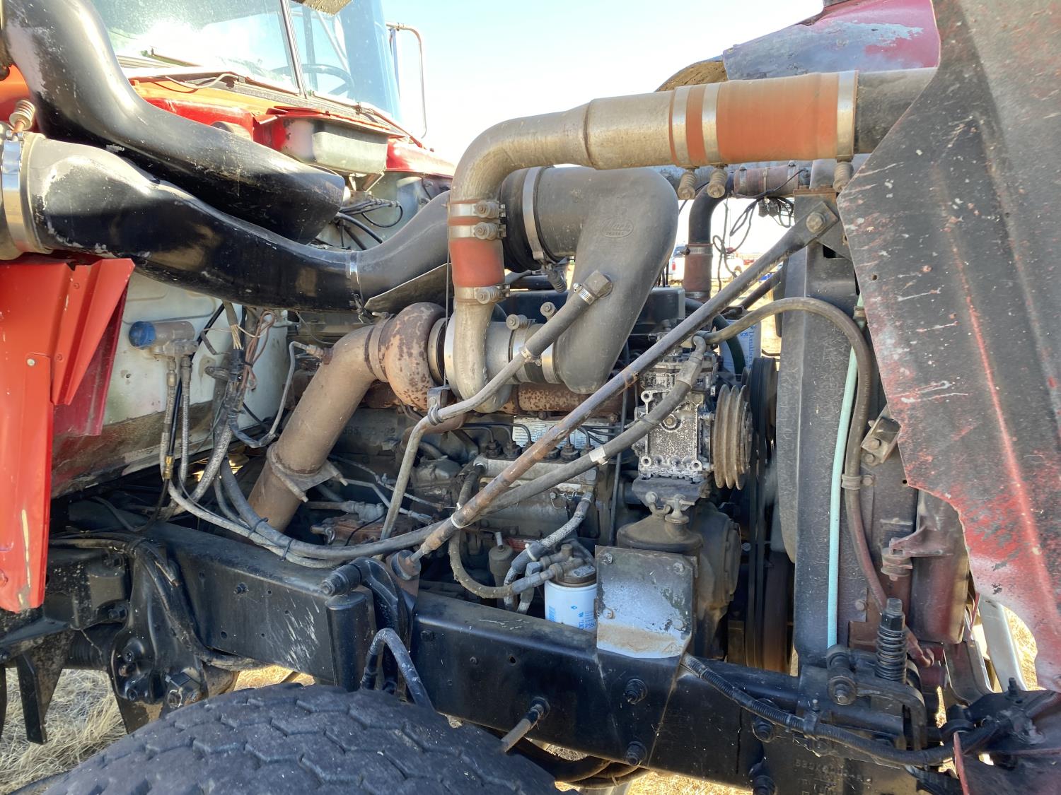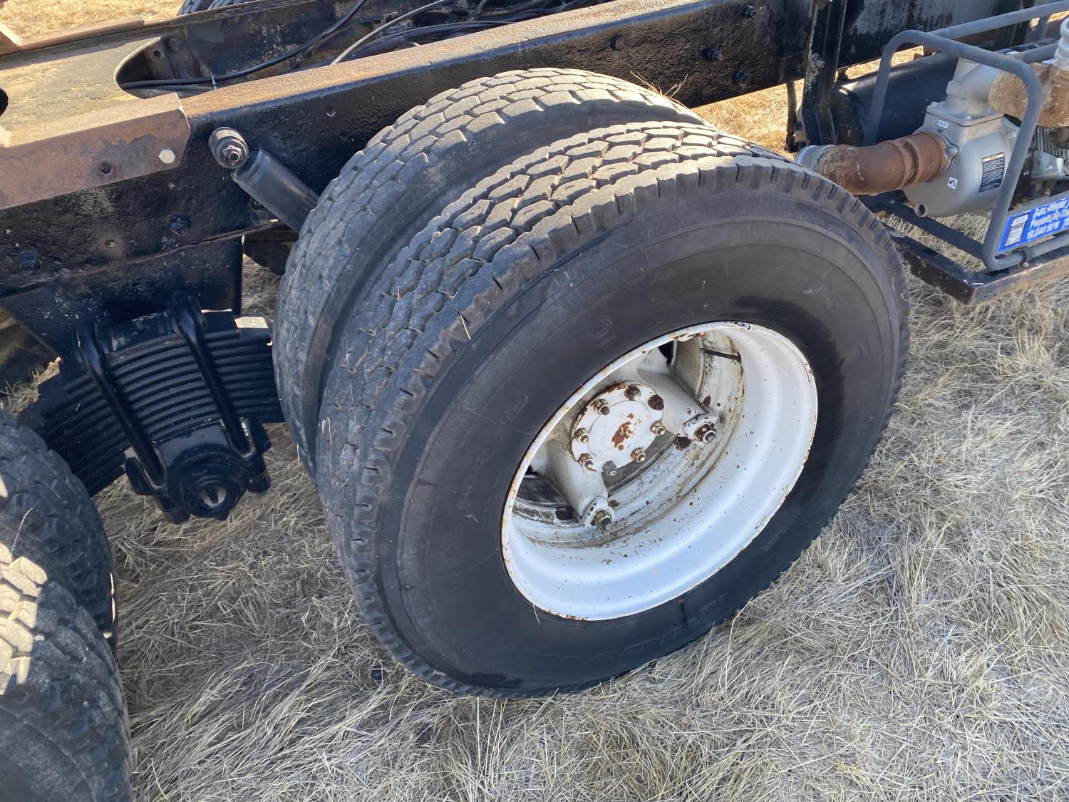 Mack E6-350 11.0 L 6 cylinder 350 HP engine, Mack AIR SHIFT OVERDRIVE 10 speed manual transmission, spring suspension, 11,900 lb front axle, 37,900 lb rear axles, 220 inch WB, 13R22.5 front tires, 11R22.5 rear tires