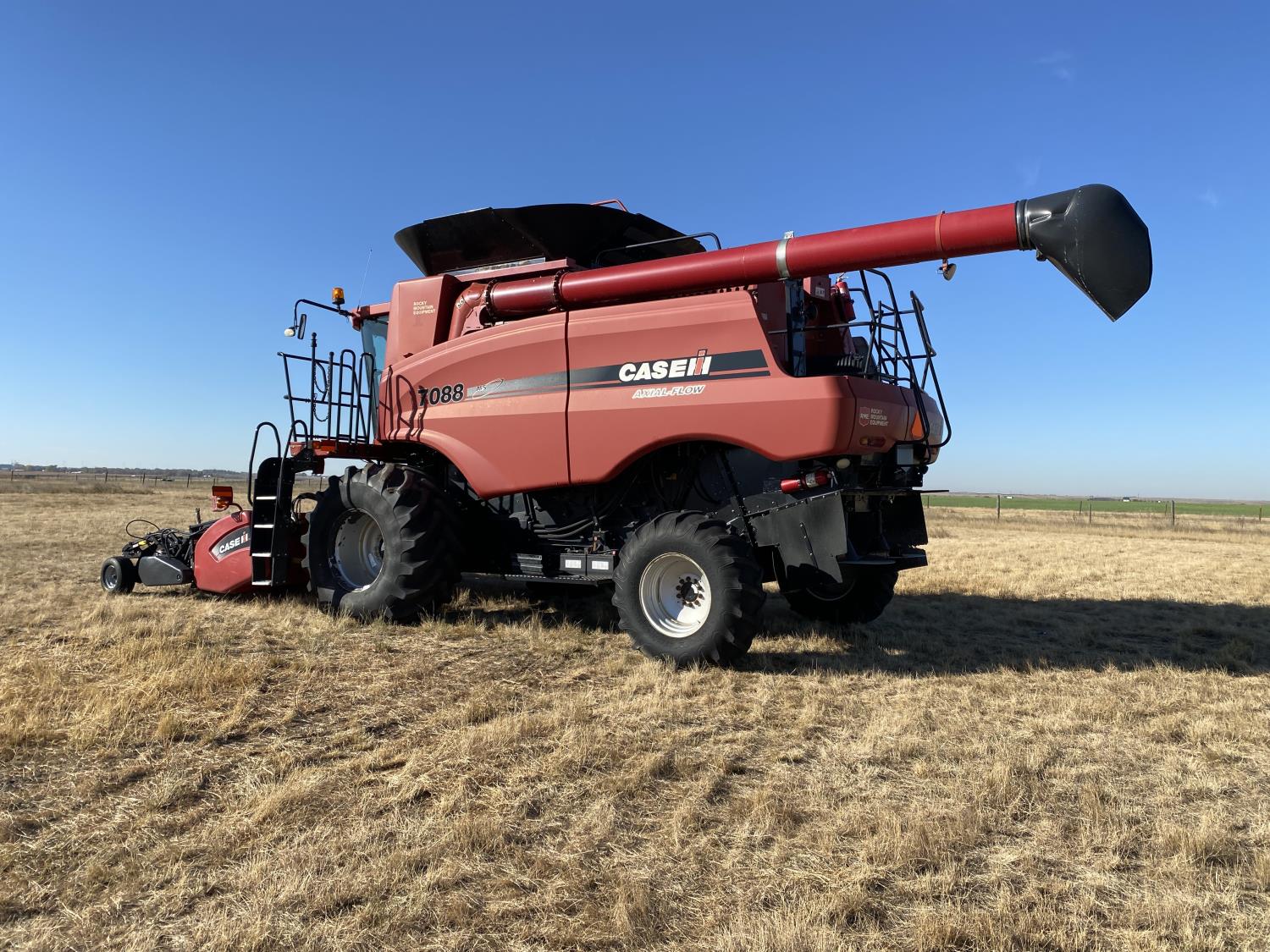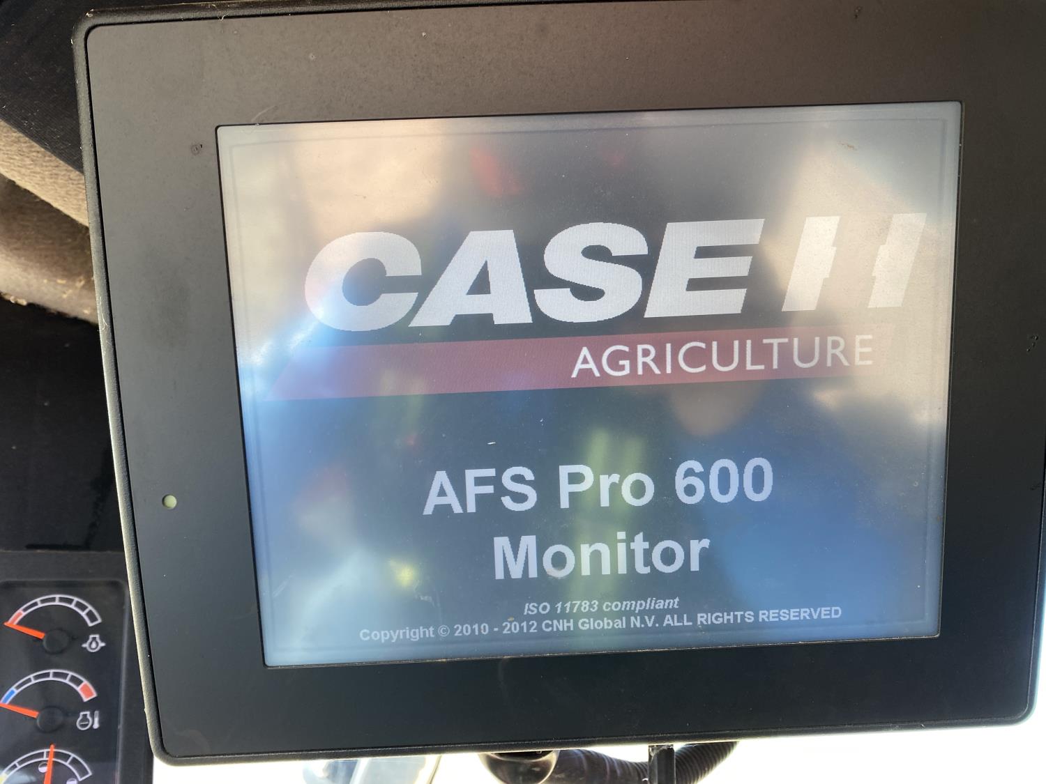 2011 Case iH 2016-14 14 ft pick-up header, variable speed reel, auto header height, fore & aft, reverser, lateral tilt, rock trap, yield & moisture, chaff spreader, chopper, grain tank extensions, 20 ft auger, A/C, buddy seat, AFS Pro 600 Monitor, 800/65R32 front tires, 18.4-26 rear tires