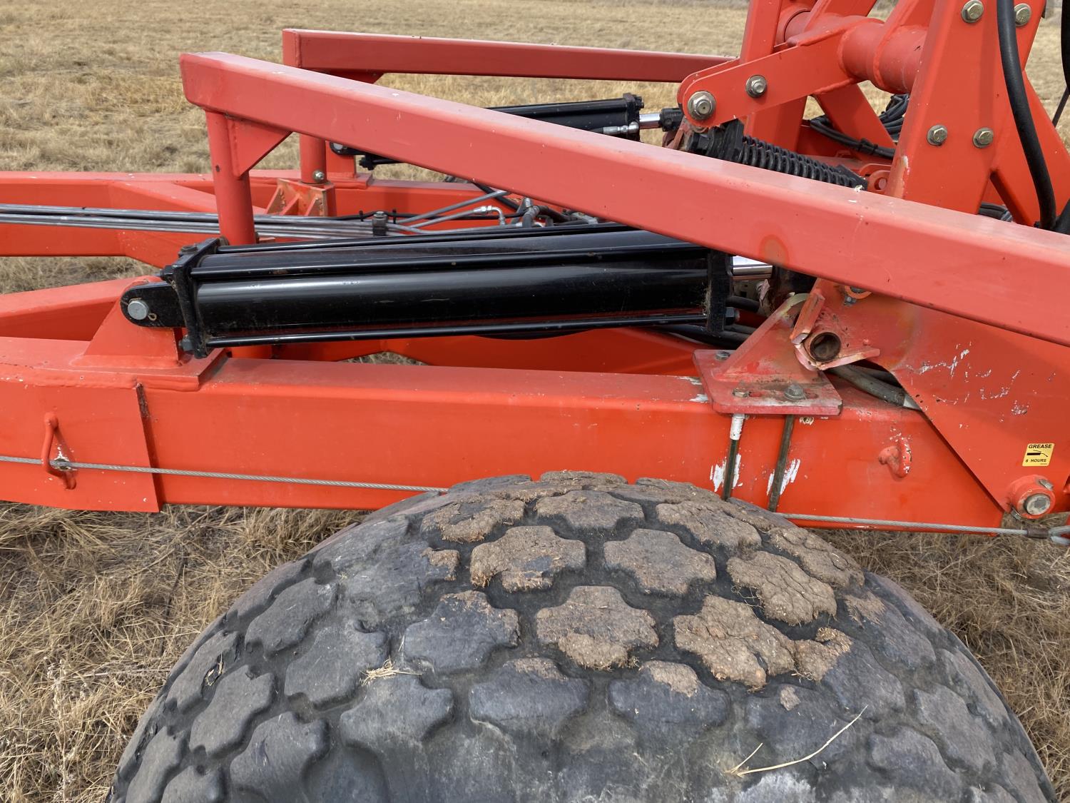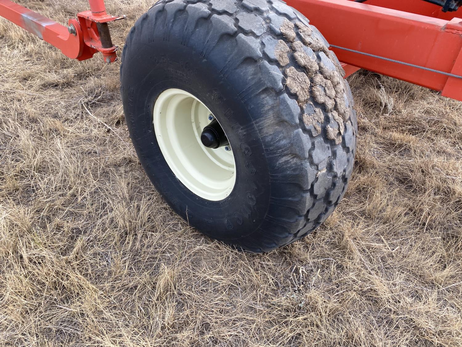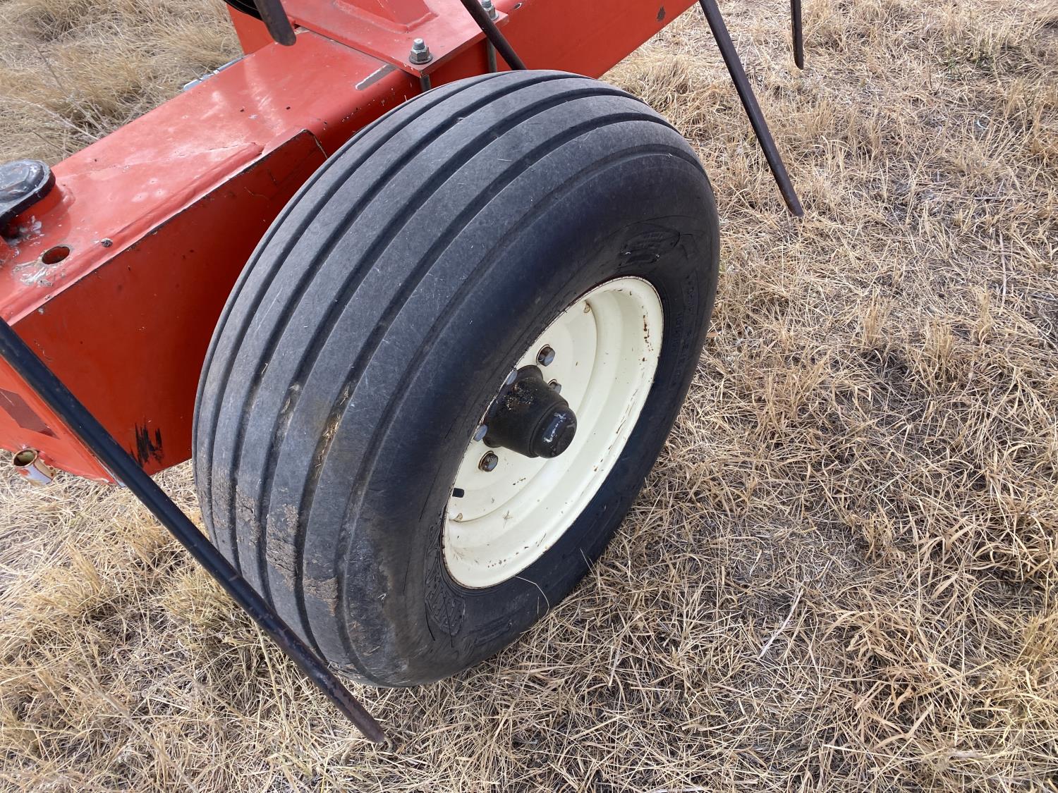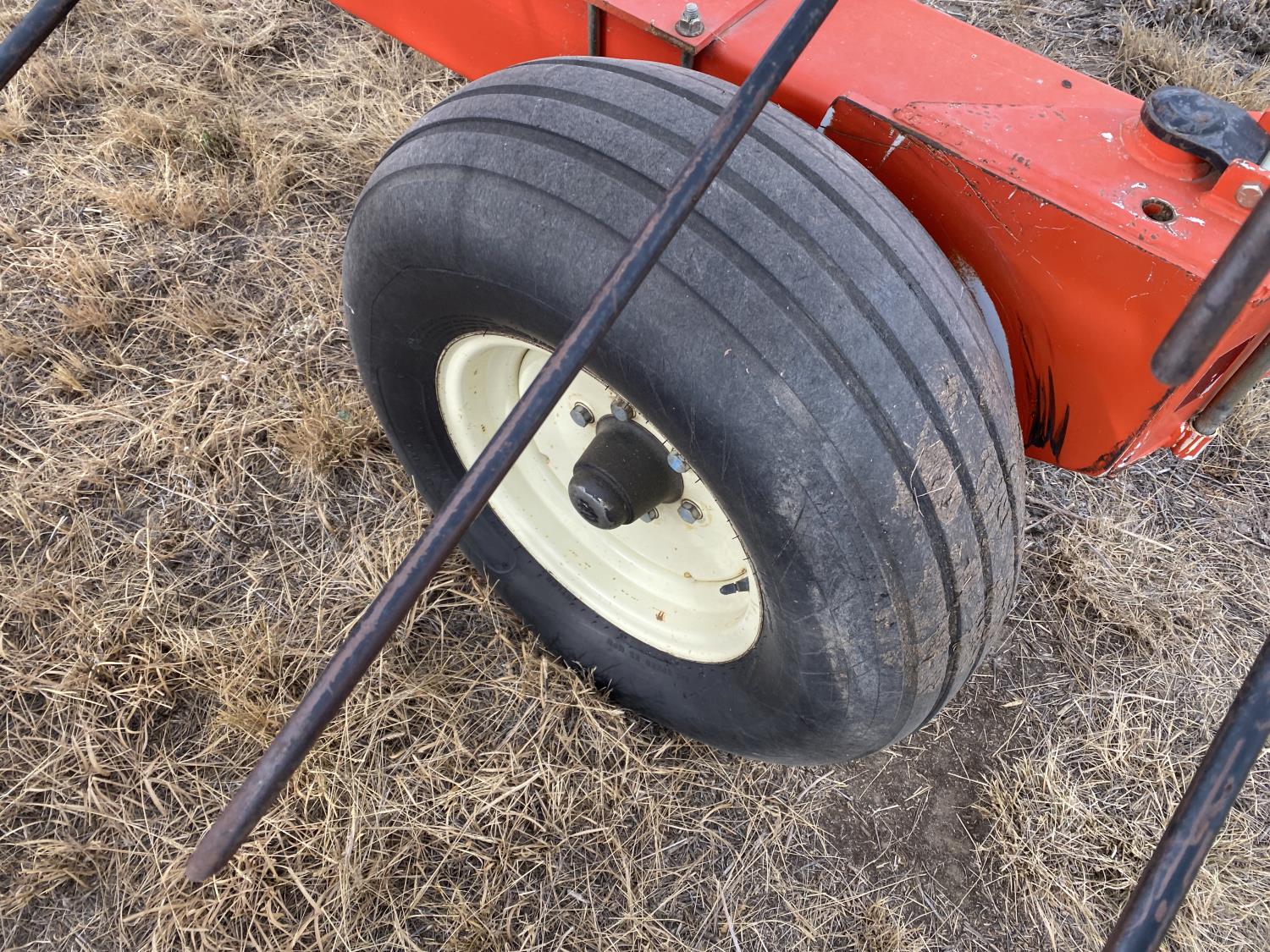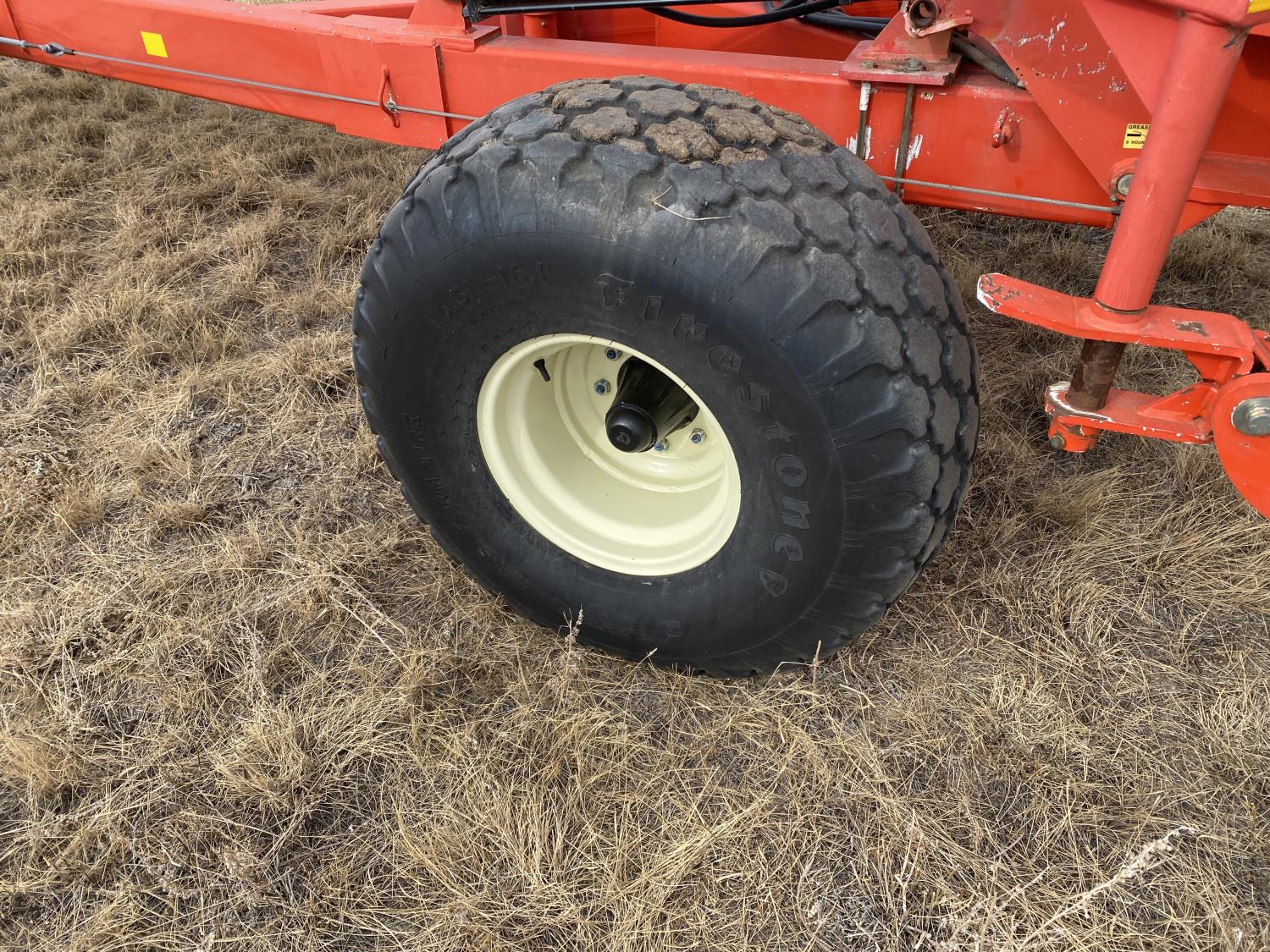 5 bars, 1/2 inch tine diameter, 24 inch tine length, manual tine adjustment, 16.5-16.1 main frame tires, 11-15 wing tires