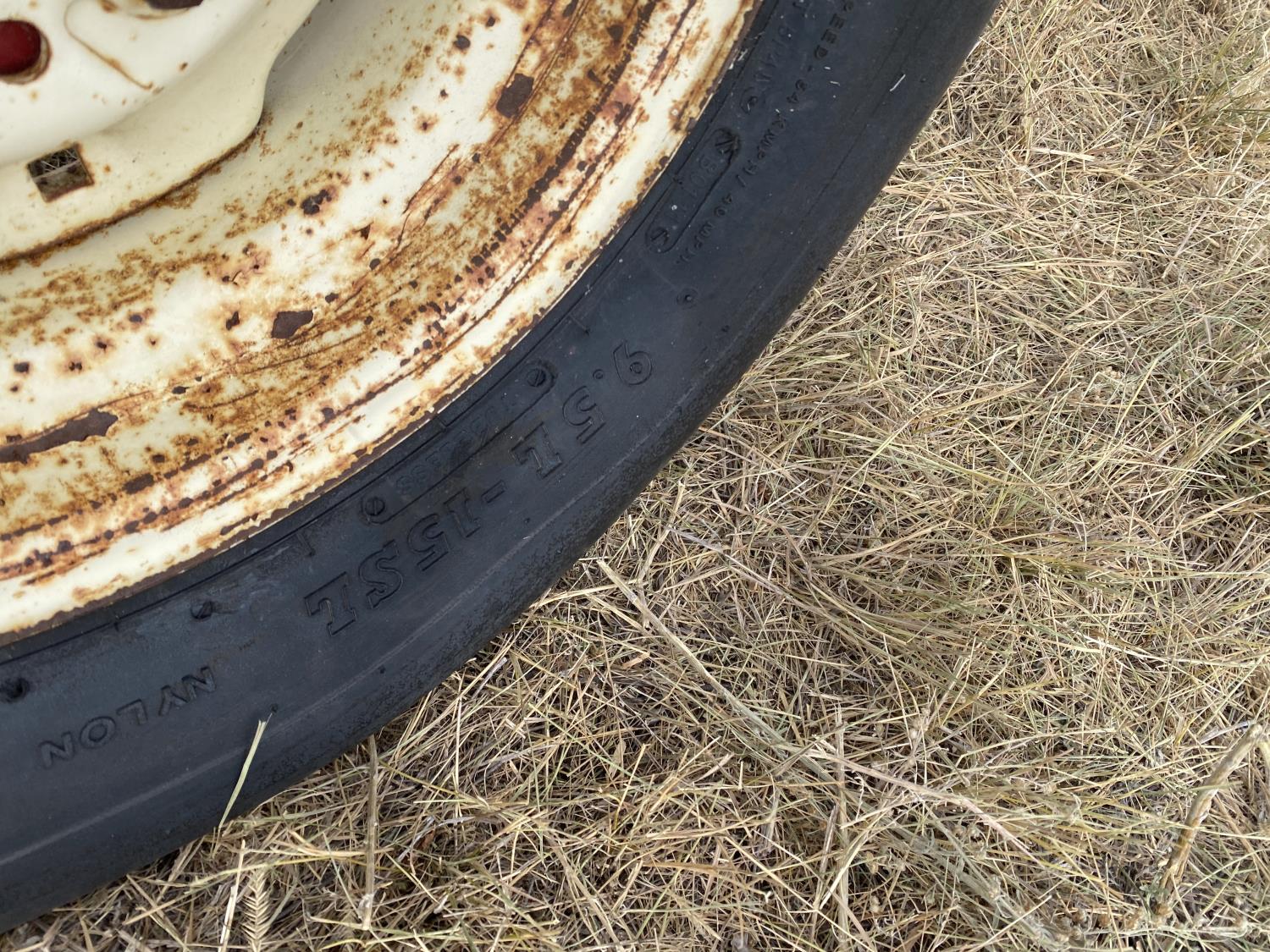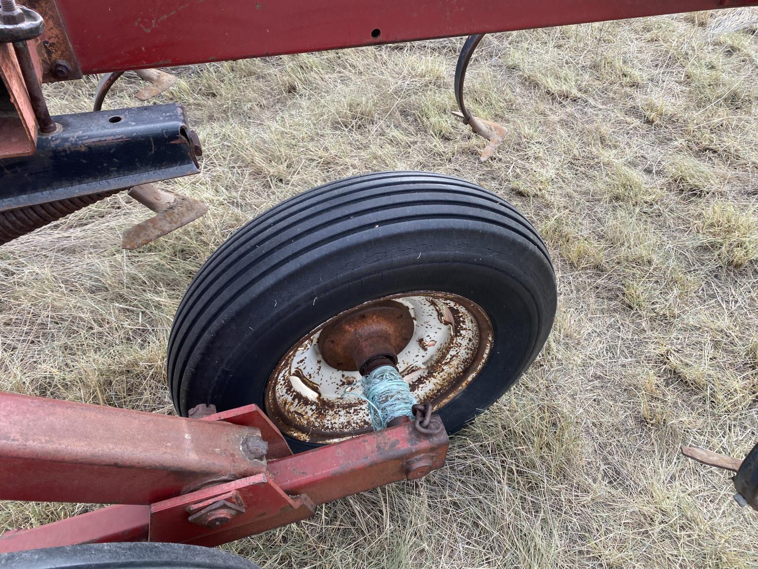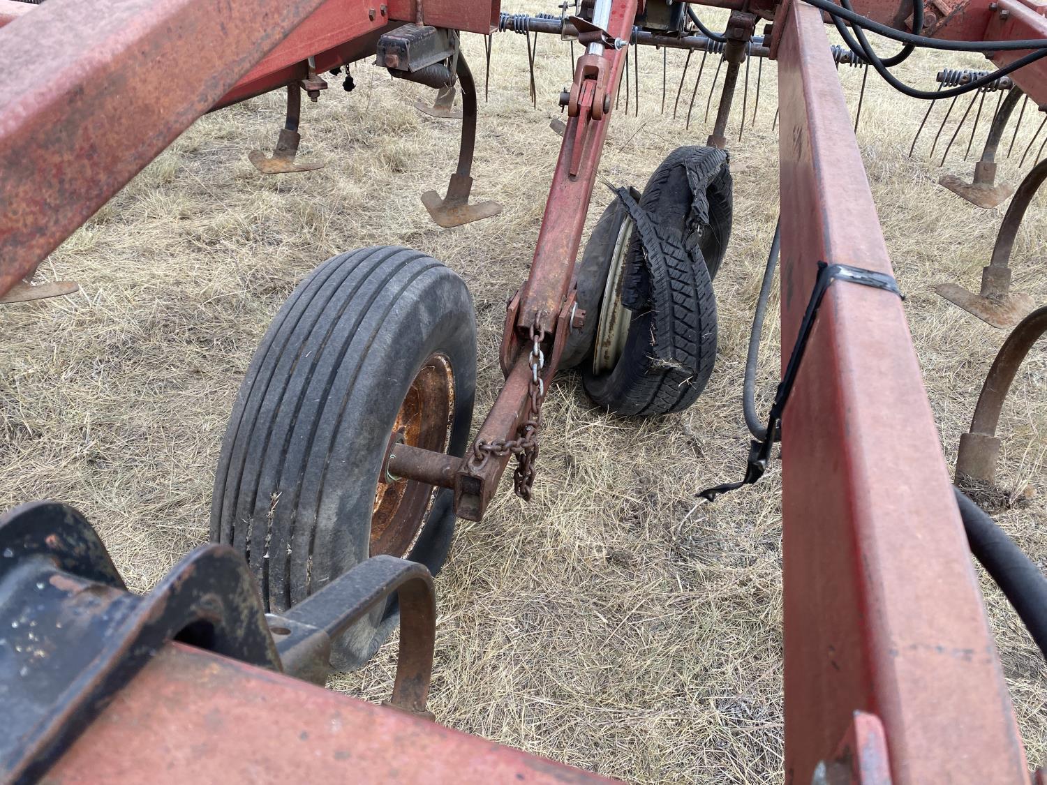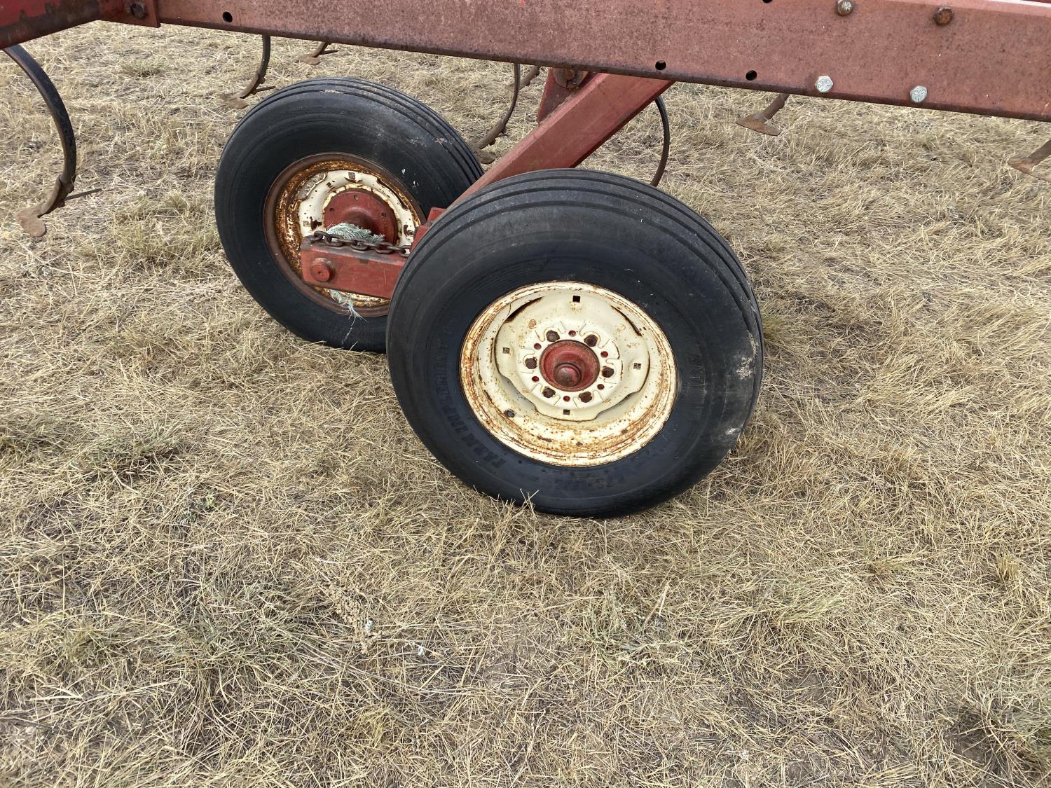 12 inch spacing, 10 inch sweeps, spring tooth harrows, rear hitch, 9.5L-15 tires